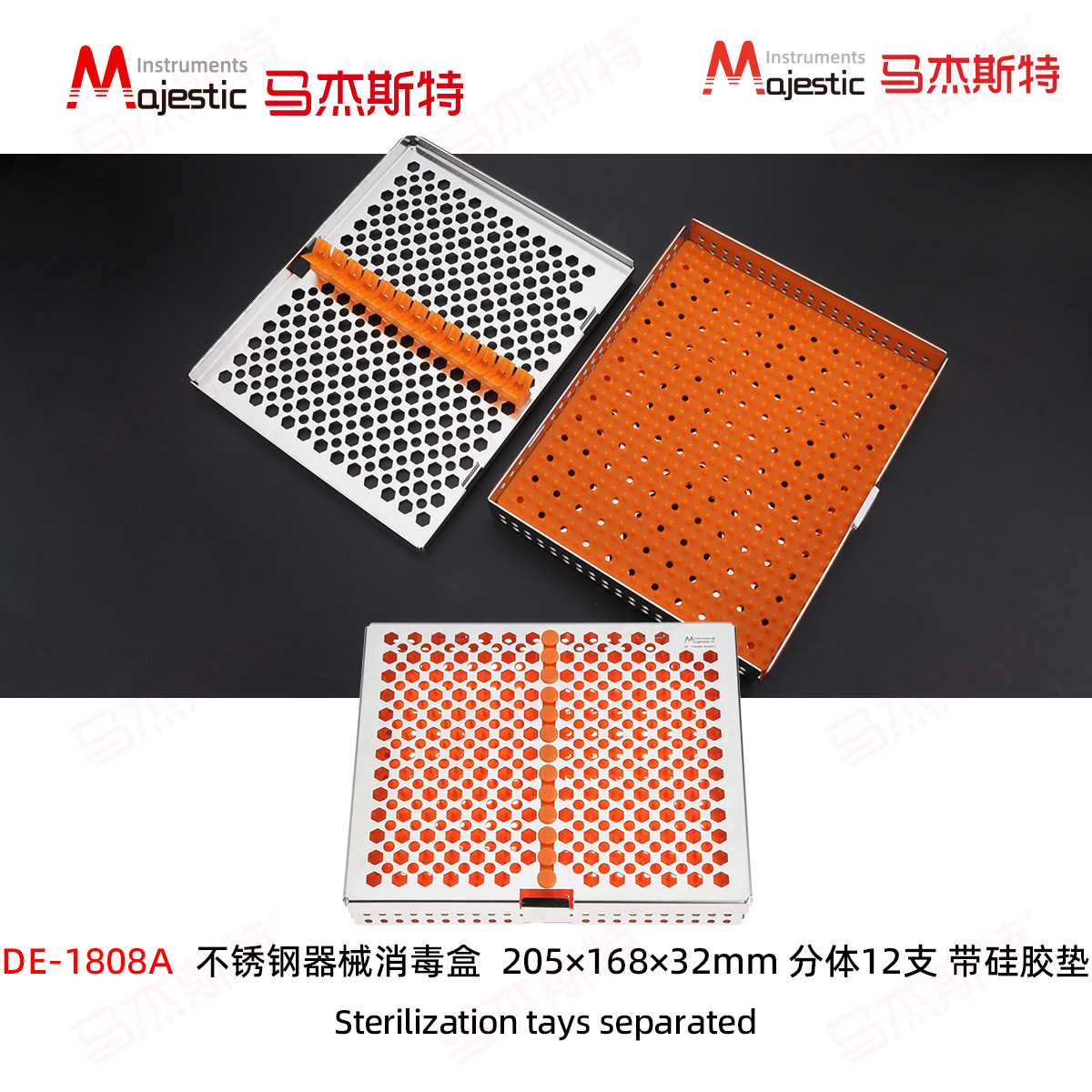 DE-1808A силиконовая прокладка, разделенная коробка для стерилизации из нержавеющей стали, набор инструментов для удаления зубов и имплантации, ящик для инструментов