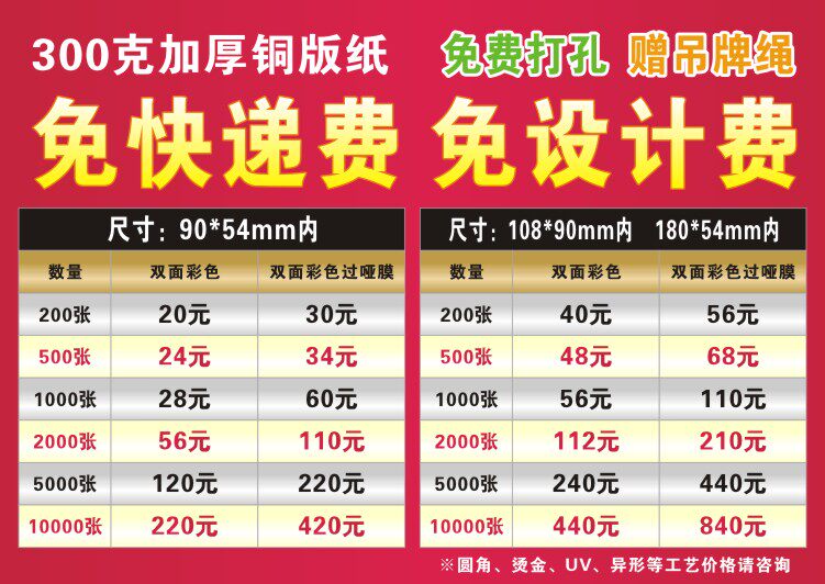 Бумага: 300 грамм медной бумаги с медной панелью, одиночная (двойная) цветная печать