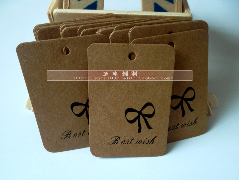 Общая точная одежда Tag Custom Торговая марка Производство бесплатное дизайн карты бумажных тегов и подарки Bow Bowl Book