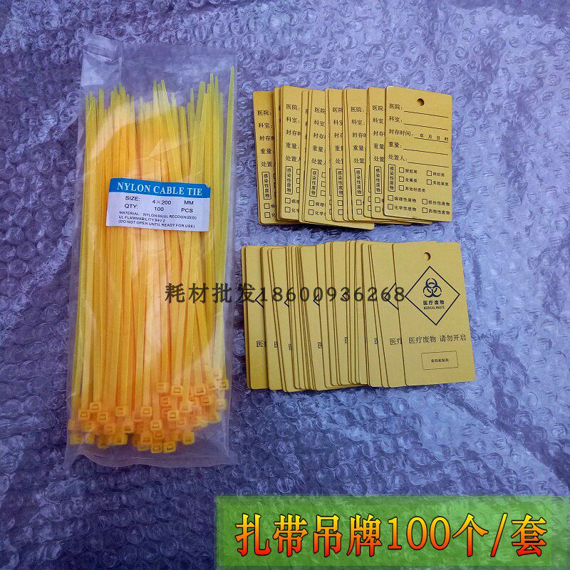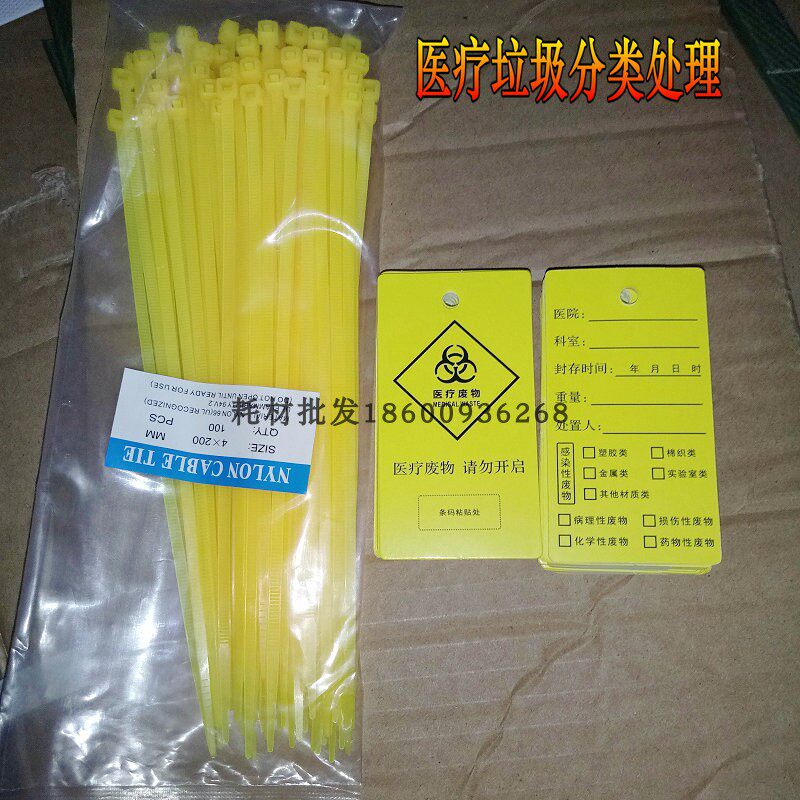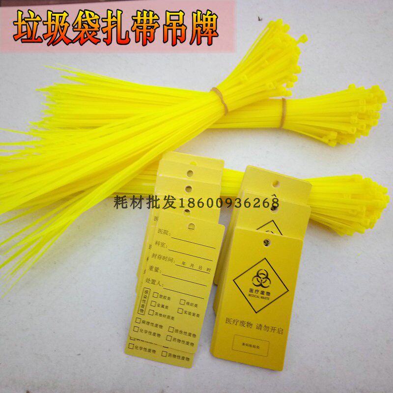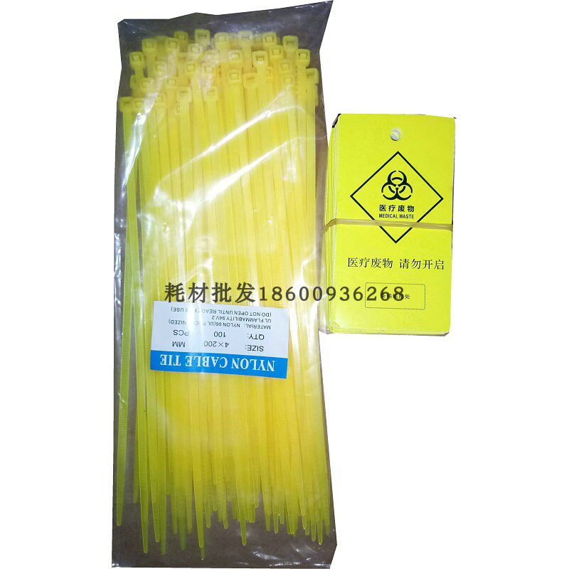 Медицинский пластиковый мусорный мешок, нейлоновый пакет, желтые кабельные стяжки