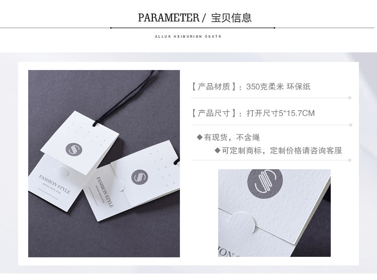 Новый продукт одежда универсальный складной тег Spot Shop Shop Shop Мужская и женская белая карта лейбл пользовательский дизайн печати