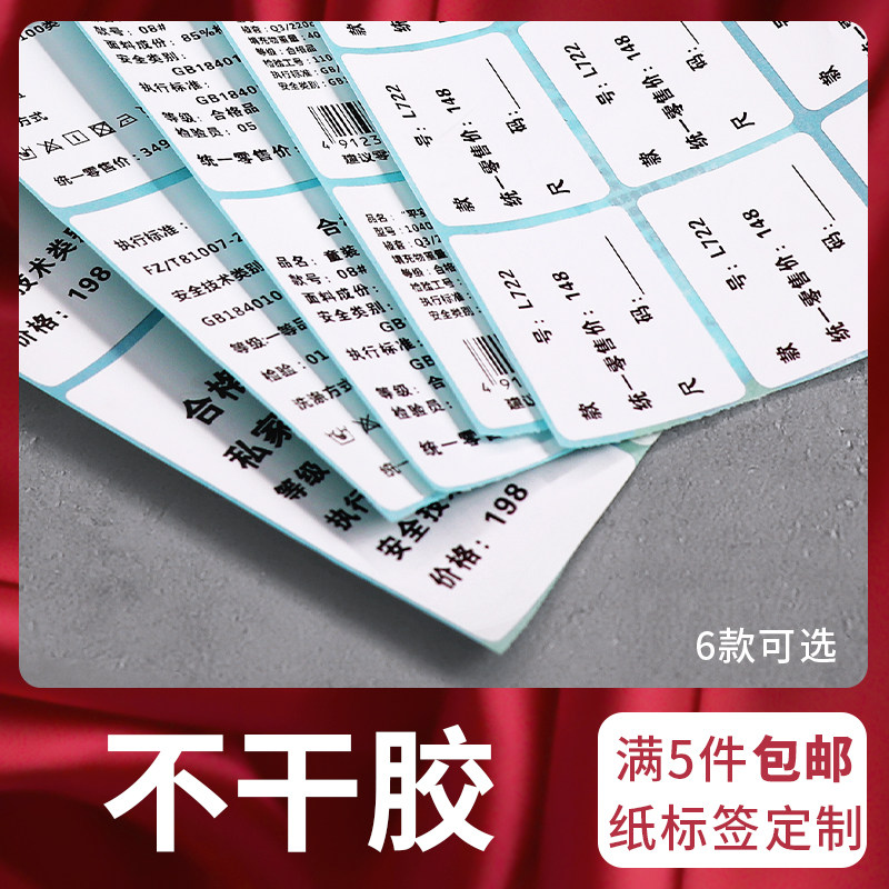 Наклейка с тегом одежды пользовательская медная версия бумага не -жареная клейкая метка пользовательская печатная бумага для бумажной одежды размер цена цена Код Номер номера тег бумажный сертификат продукта Универсальная одежда наклейка