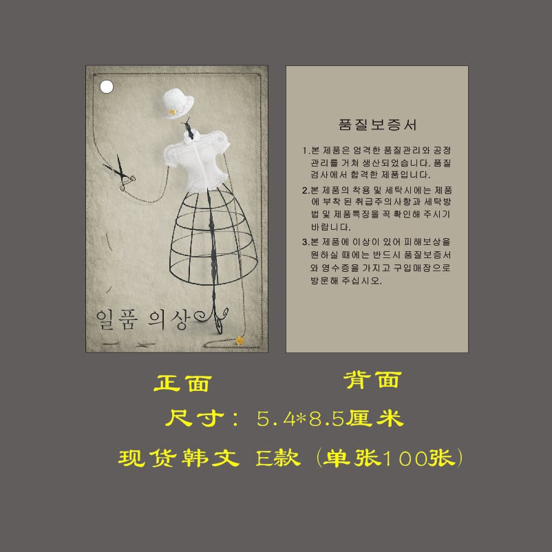 | Цвет: | В наличии 100 корейских листовок на белом фоне (веревка в комплекте), Индивидуальная фотопечать логотипа, В наличии 100 бирок корейской детской одежды., Spot Корейский набор из 2 листов по 100 шт., В наличии 100 листов типа А (верёвка в комплекте), В наличии 100 листов типа Б (с верёвкой в комплекте), В наличии 100 листов типа С (с верёвкой в комплекте), В наличии 100 листов типа Д (с верёвкой в комплекте), В наличии 100 листовок в стиле E (с веревкой в комплекте) |