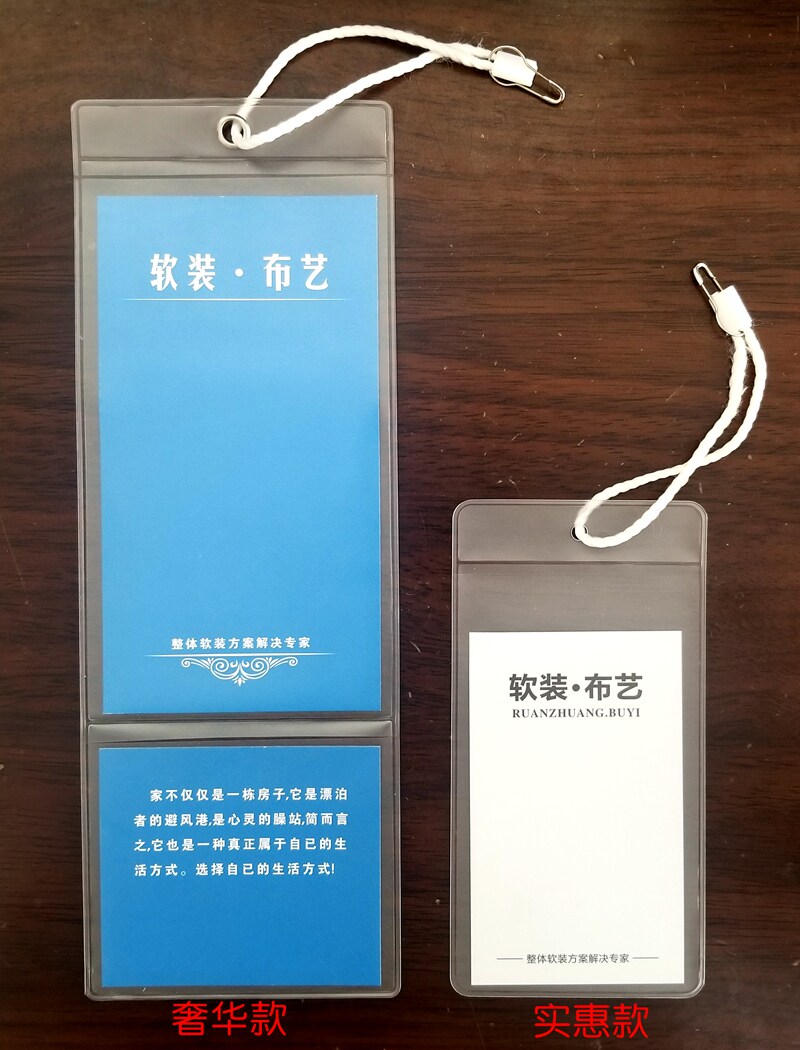 Внедрение роскоши: большой тег 7*13 см. Маленькая метка 6*7 см. Пластиковый набор 8,5*22 см.