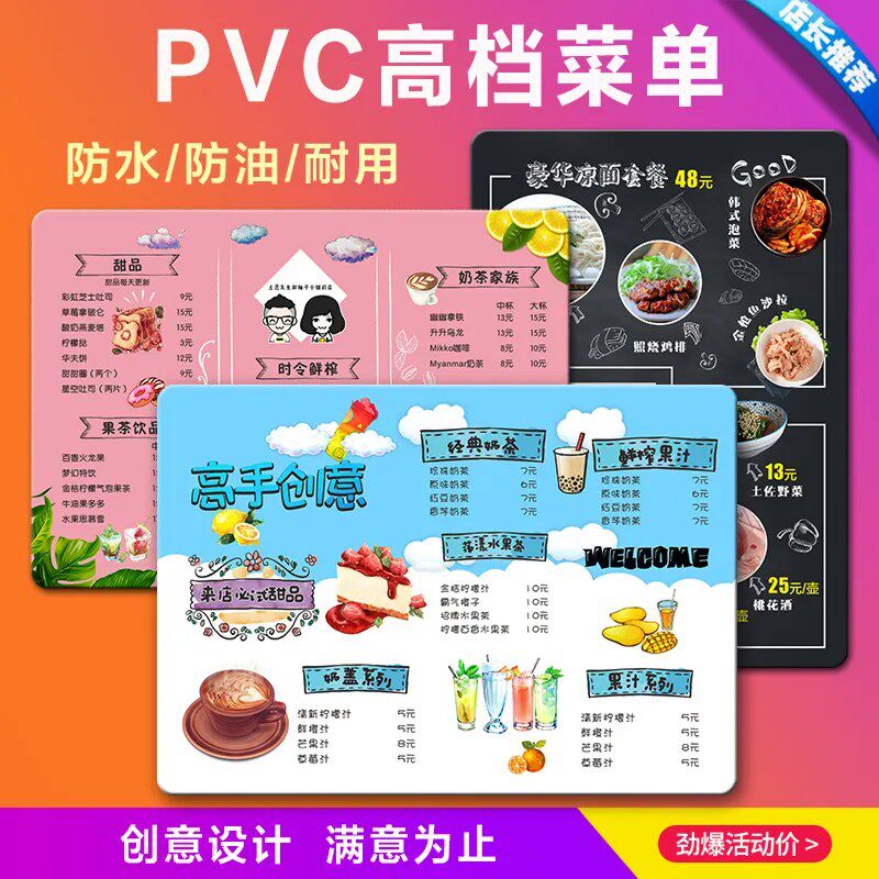 ПВХ меню Создание меню ценовых рецептов рецепты рецепты стола KTV Wine Custom Barbecue Design Printing Card Carding Пластиковая уплотнение водонепроницаемость