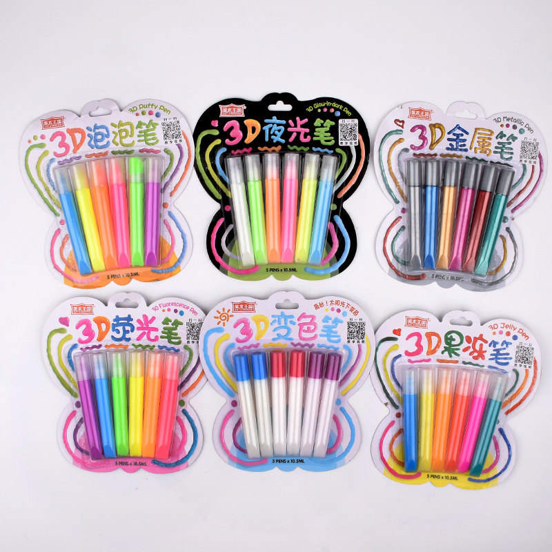 Художественная металлическая флуоресцентная трехмерная мигающая светящаяся кисть, DIY, 6 цветов, 3D