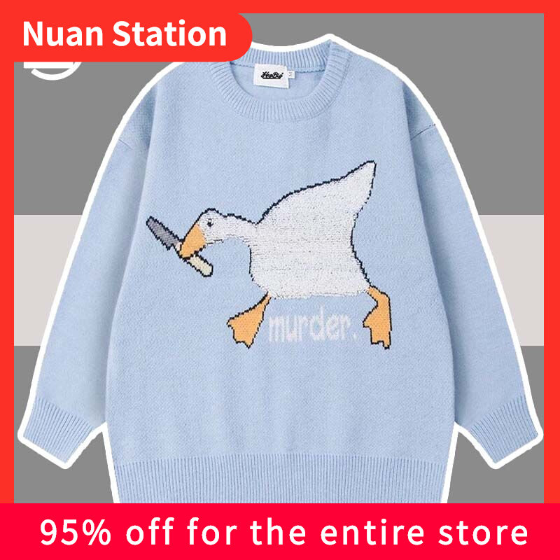 Вязаные свитера мужчины осенние мультипликационные мультипликации утиной утиной утилизатор утилизации шерстяного пулора. Женский корейский хип -каптон случайный свитер Sweaater Sweaater Sweaater