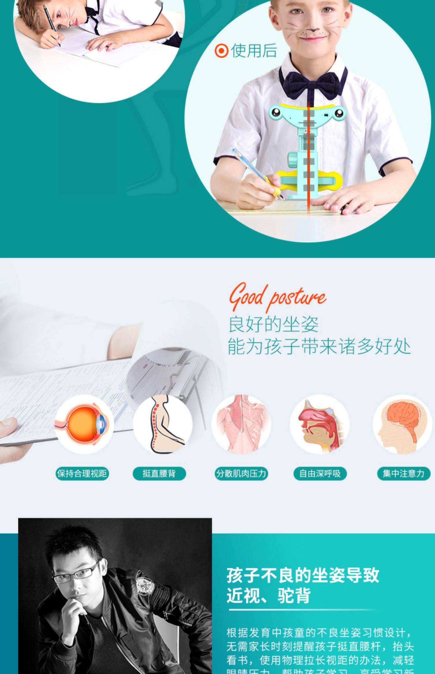 Детский защитный корректор осанки для школьников и студентов, детские ортезы, трубка, защита глаз