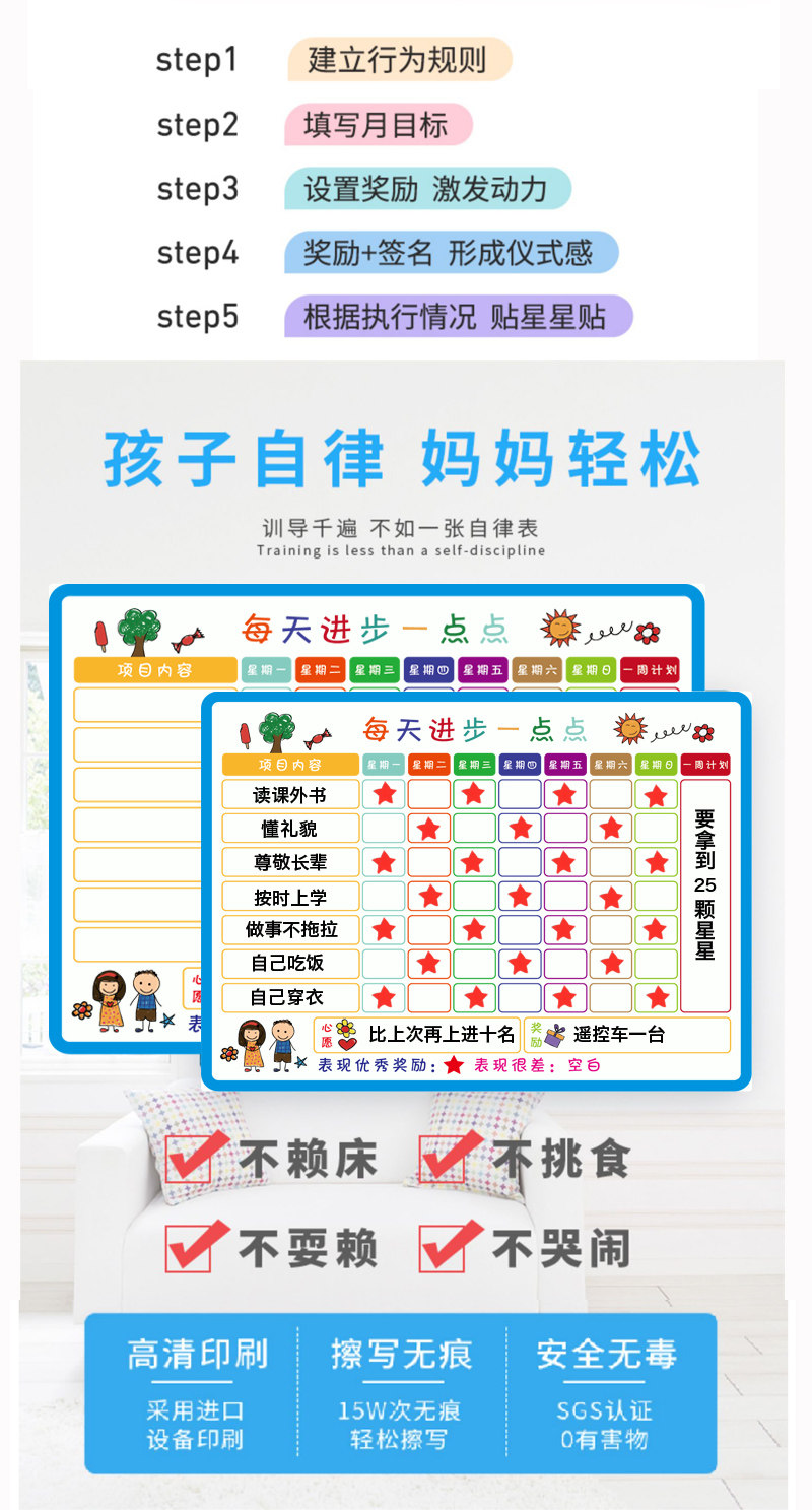Детский рост самоквиплинарной наклейки на стенах. Запись вознаграждения из дома магнитное пикап еженедельное плановое управление временем курс начальной школы