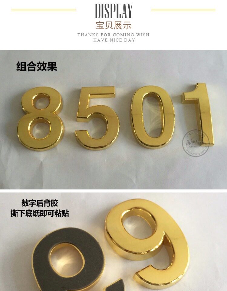 Золотые металлические пластиковые клейкие цифровые наклейки, прямые продажи с завода, 5см