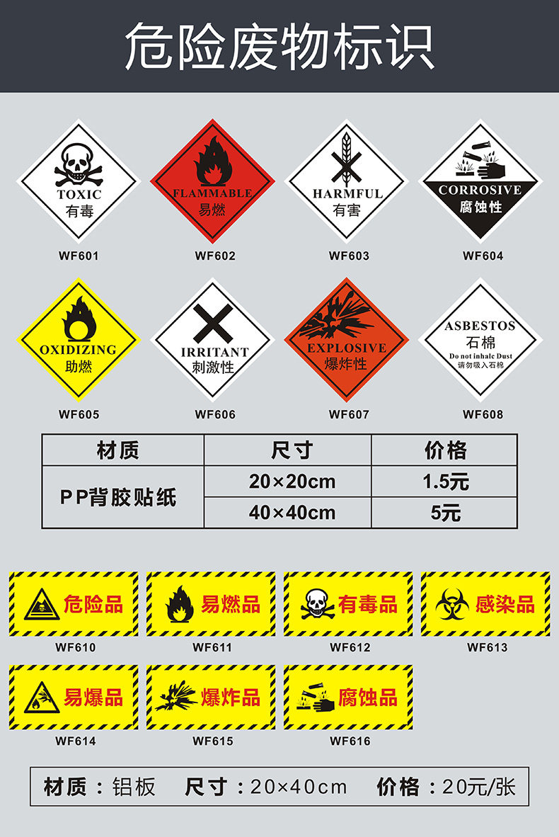 | Цвет: | WF301 без слов опасных отходов (алюминиевая пластина), WF302 принесите слов опасные отходы (алюминиевая пластина), WF303 Медицинские отходы (алюминиевая пластина), WF304 Общие твердые отходы (алюминиевая пластина), WF305 Хранитель опасных отходов (алюминиевая пластина), WF101 раздражение (алюминиевая пластина), WF102 Corrosive (алюминиевая пластина), WF103 Токсичная (алюминиевая пластина), Взрыв WF104 (алюминиевая пластина), WF105 Асбест (алюминиевая пластина), WF106 помощь (алюминиевая пластина), WF107 вредный (алюминиевая пластина), Воспламеняется WF108 (алюминиевая пластина), WF109 инфекция (алюминиевая пластина), WF110 Токсичный/легковоспламеняющийся (алюминиевая пластина), WF111 - токсичный/легковоспламеняющийся/коррозийный (алюминиевая пластина), WF112 Комплексная (алюминиевая пластина), WF501 период выделения дождевой воды (алюминиевая пластина), Wf502 Выходной порт канализации (алюминиевая пластина), WF503 Выпускной газовый порт (алюминиевая пластина), WF504 Общие твердые отходы (алюминиевая пластина), WF505 Источник выбросов шума (алюминиевая пластина), WF241 Поле хранения опасных отходов (алюминиевая пластина), В зоне хранения опасных отходов WF248 (алюминиевая пластина) |