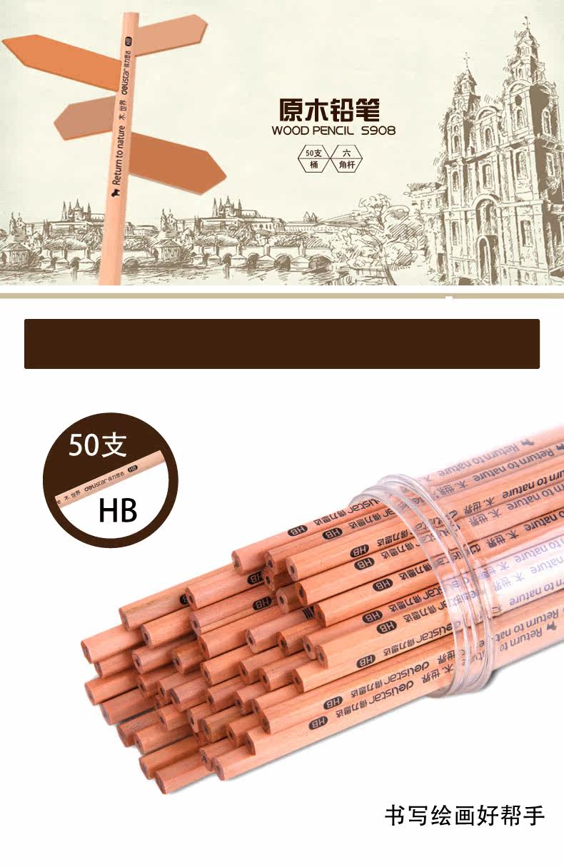 Гили офисные канцелярские канцелярские товары карандаш HB/2B Студенческий офис карандаш Треугольный стержень шесть ходов 30 баррелей 50 ведра