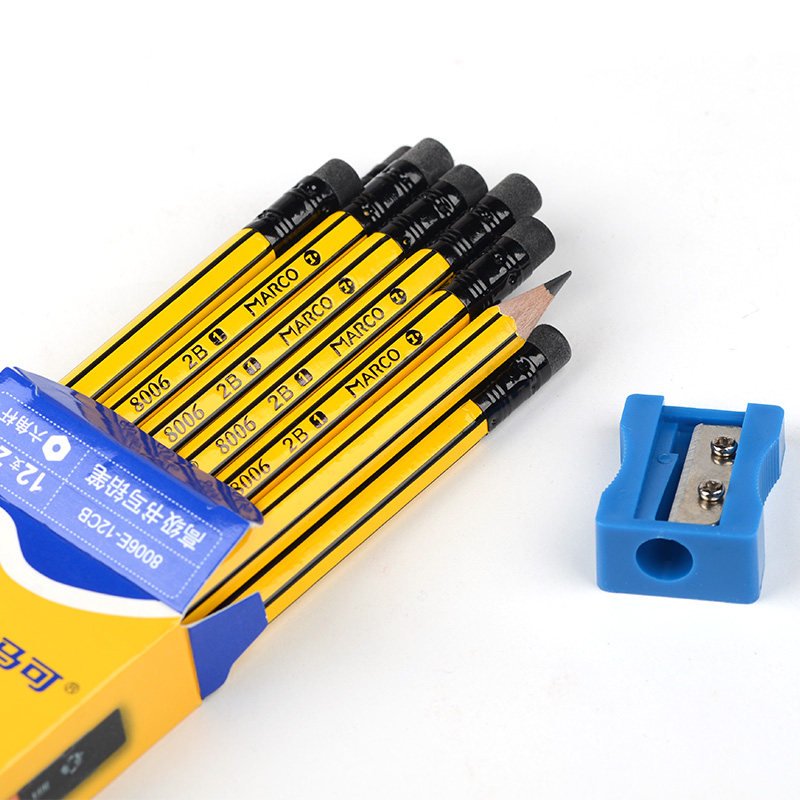 Marco 8006e Pencil Yellow Black Pole HB Hexagonal 2B с резиновой головкой безопасные, положительные экзамены для учащихся, чтобы применить карту младшую школу