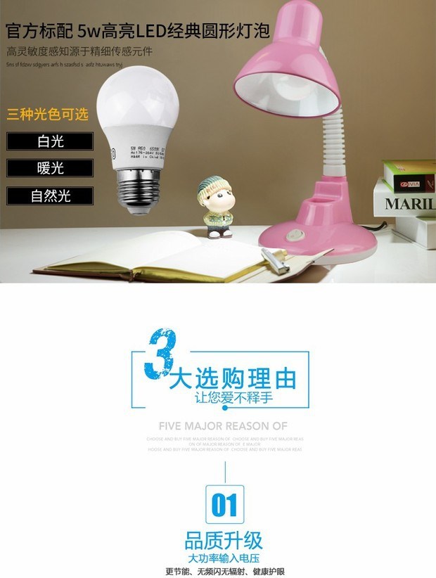- Синяя настольная лампа+обучение без частых вспышек светодиодов5 ватт