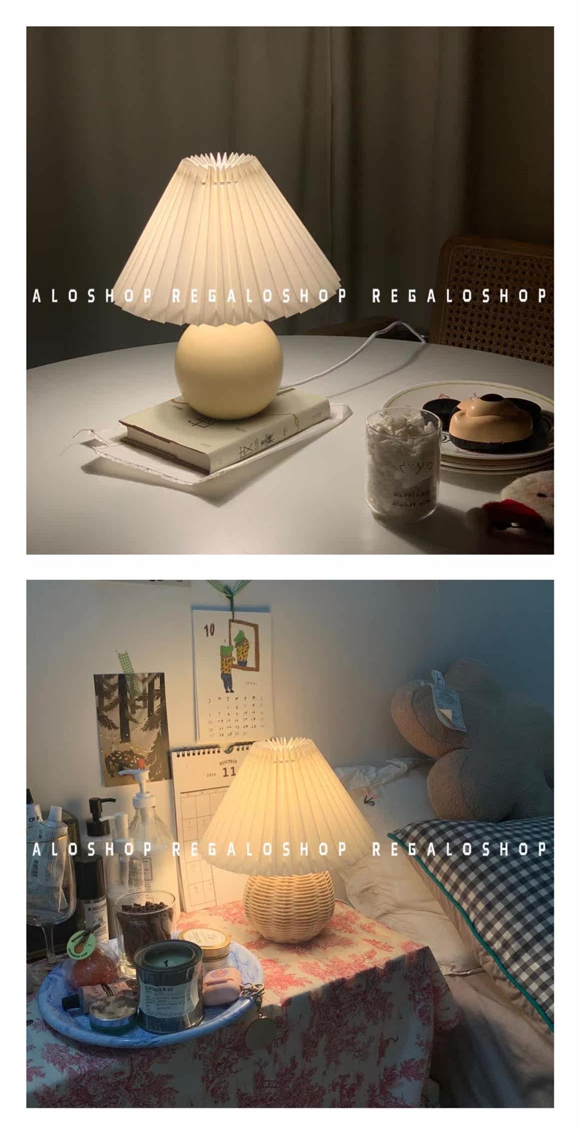 Регало | Винтажная корейская кремовая плиссированная прикроватная лампа из ротанга, настольная лампа, лампа для спальни