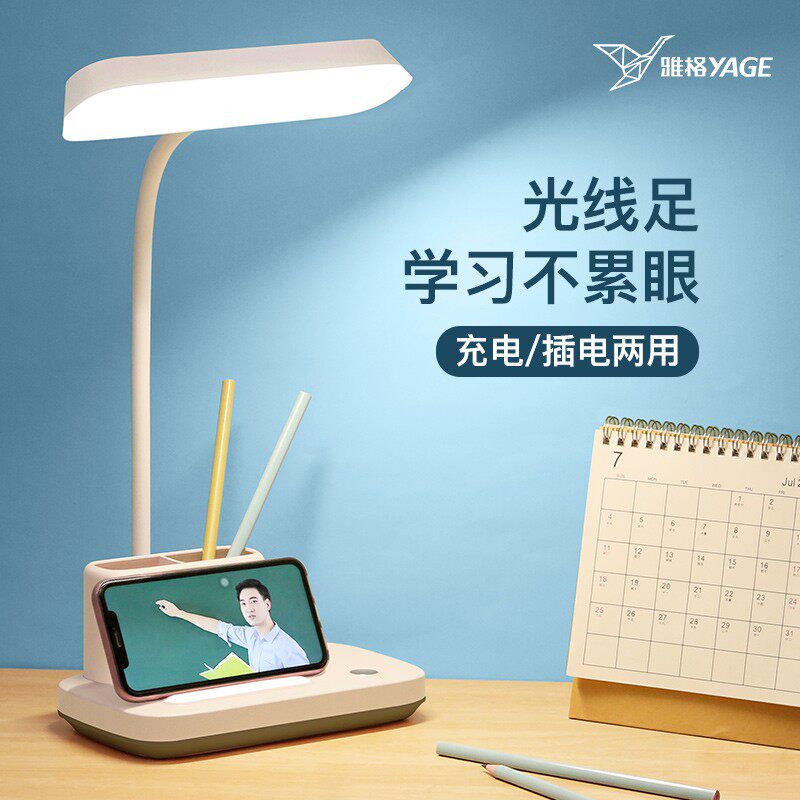 Обучающая настольная лампа с зарядкой для школьников, светодиодный держатель для ручек для рабочего стола для домашнего использования для спальни, защита глаз, подходит для студента