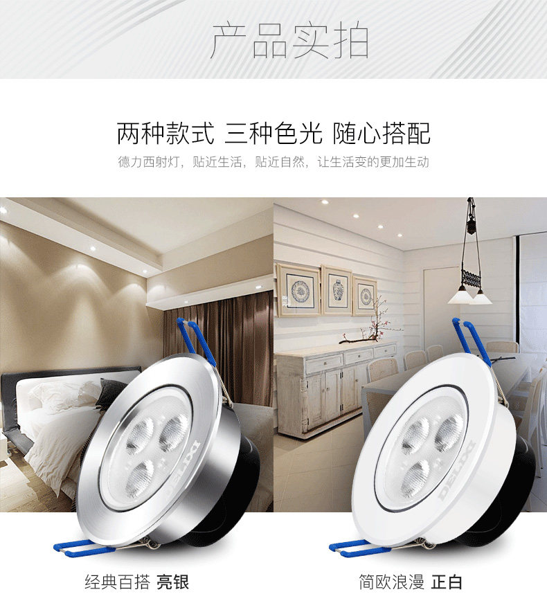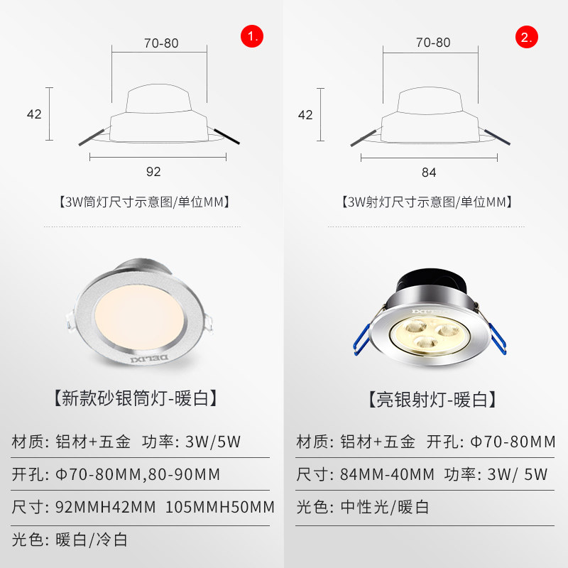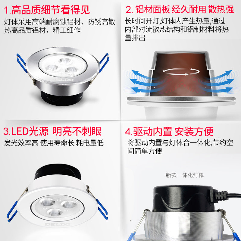 德力西 Светодиодный потолочный светильник, точечное освещение для гостиной, 3W, 5W, 2.5 дюймов