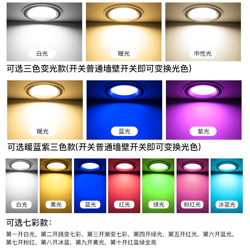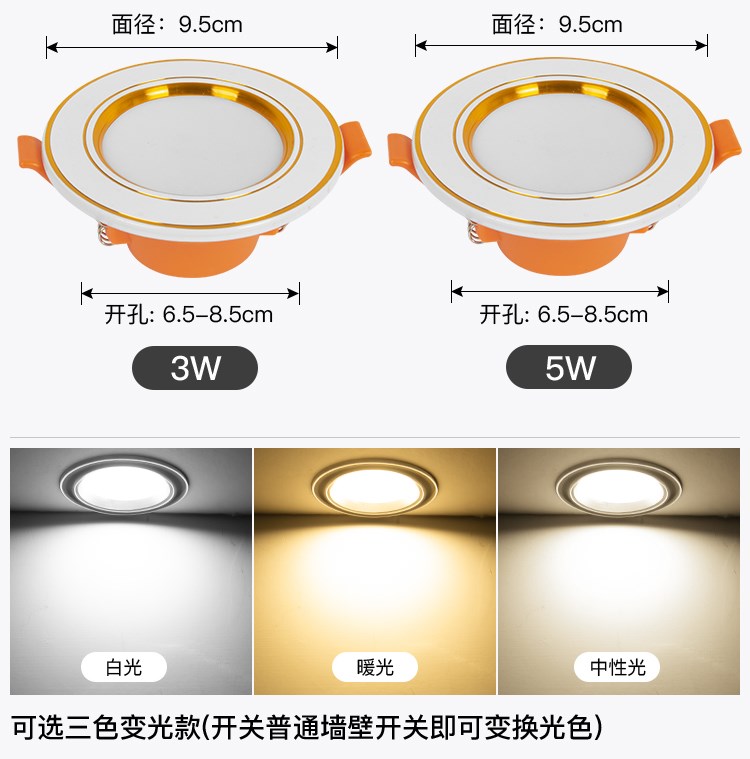 Светодиодный встраиваемый потолочный светильник для гостиной, круглое потолочное точечное освещение, 3W, три цвета
