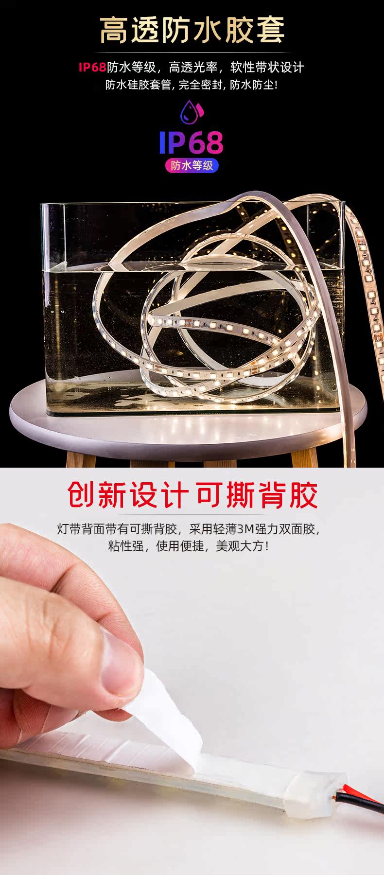 Светодиодная светодиодная лента, самоклеющийся аквариум для домашнего использования, силиконовая дорожная водонепроницаемая наклейка, супер яркая лампа, 24v