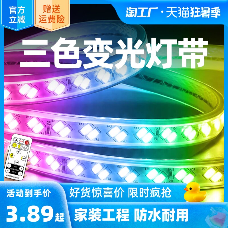 Супер яркая светодиодная светодиодная лента, дорожная потолочная лампа для гостиной, 220v, три цвета