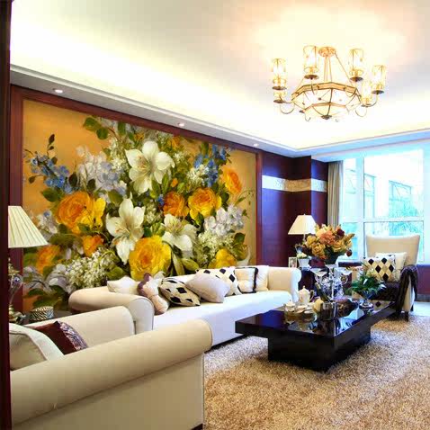 蕊西 Теплые и красочные цветы большие фрески, гостиная сгущенная телевизор Фоно обои обои из ПВХ европейское стиль обои