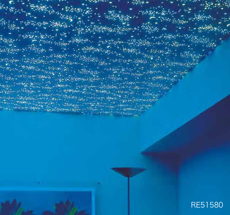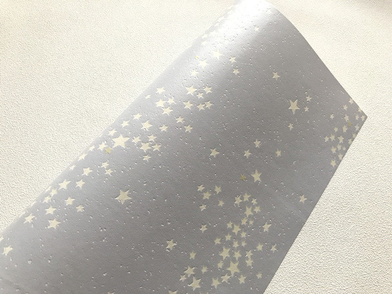 Эти обои инкрустируются из светящихся веществ на бумажной поверхности, которая может излучать свет ночью.Существует два типа светящихся принципов встроенных полос: один из них - использовать естественные минералы, которые можно хранить, и если есть внешний свет, он поглощает часть световой энергии и хранит ее.Когда внешний мир темный, он естественным образом выпустит хранящуюся часть света, которая даст светящийся эффект.Другим является использование непреодолимых тканей в качестве сырья. После облучения фиолетовым светом эффект оттекающего света производится. Поскольку необходимо использовать инструмент Purple Light, цена дороже.