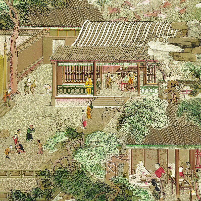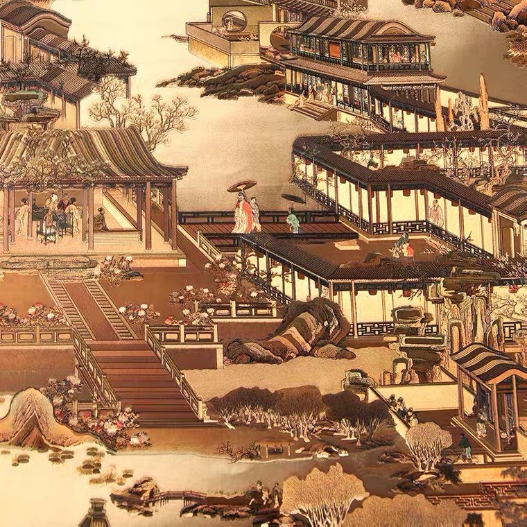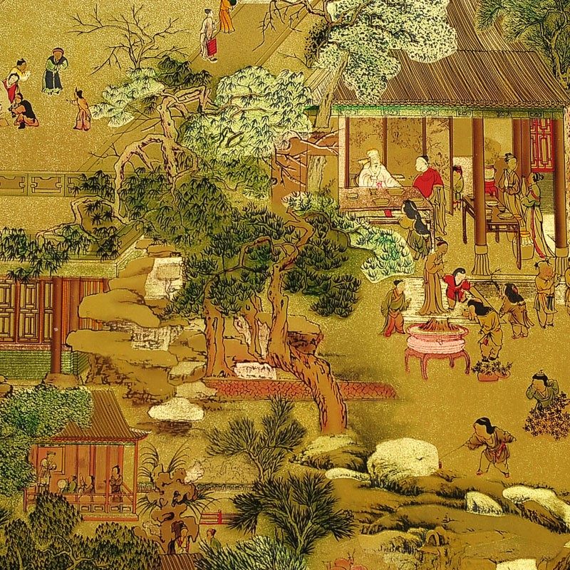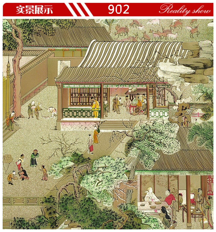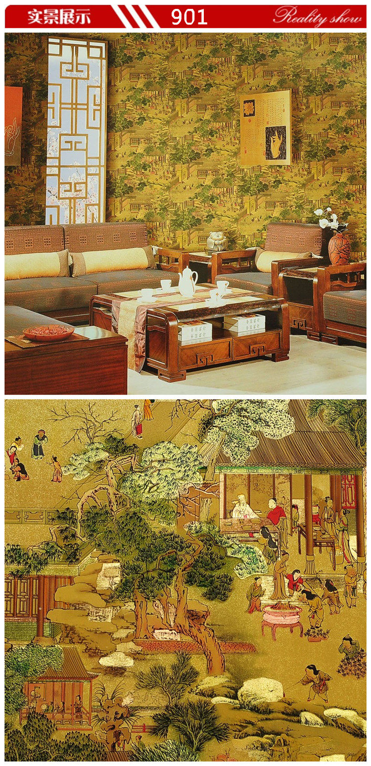 Китайский стиль KTV Gold Foil Room Древние знаменитые картины Qingming Shanghe Picture обои из гостиной спальня фоновые обои обои обои