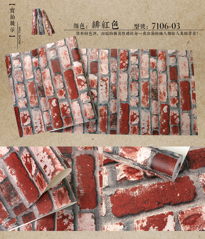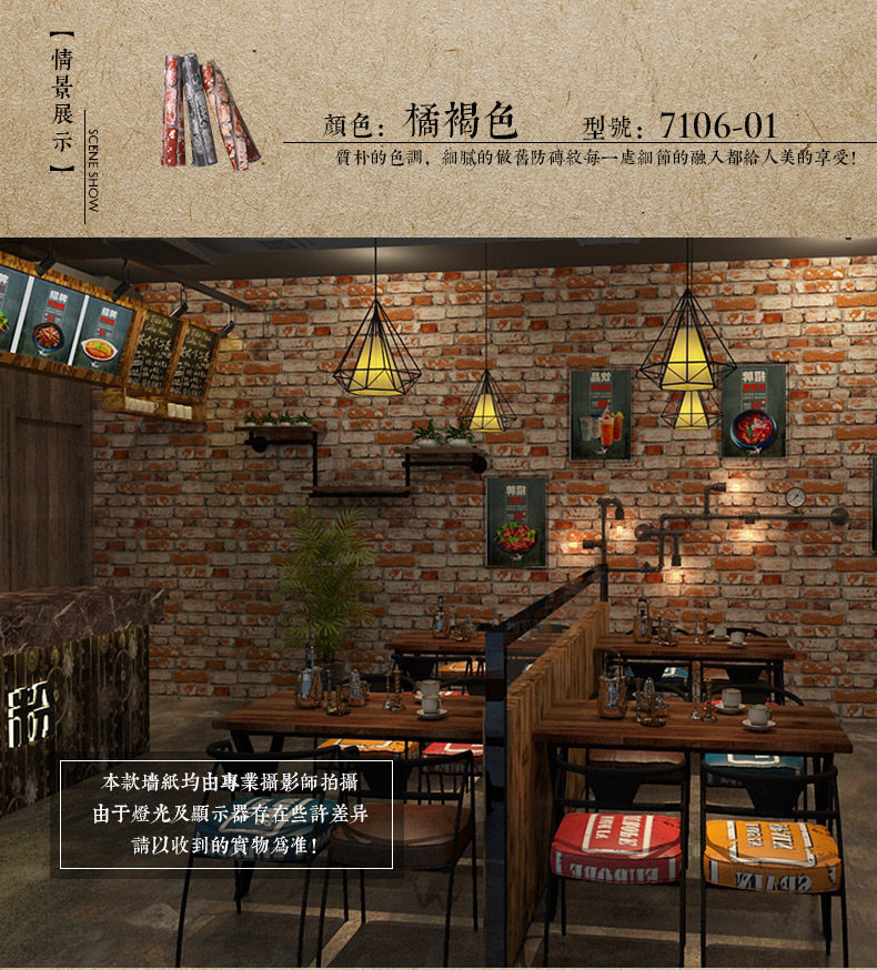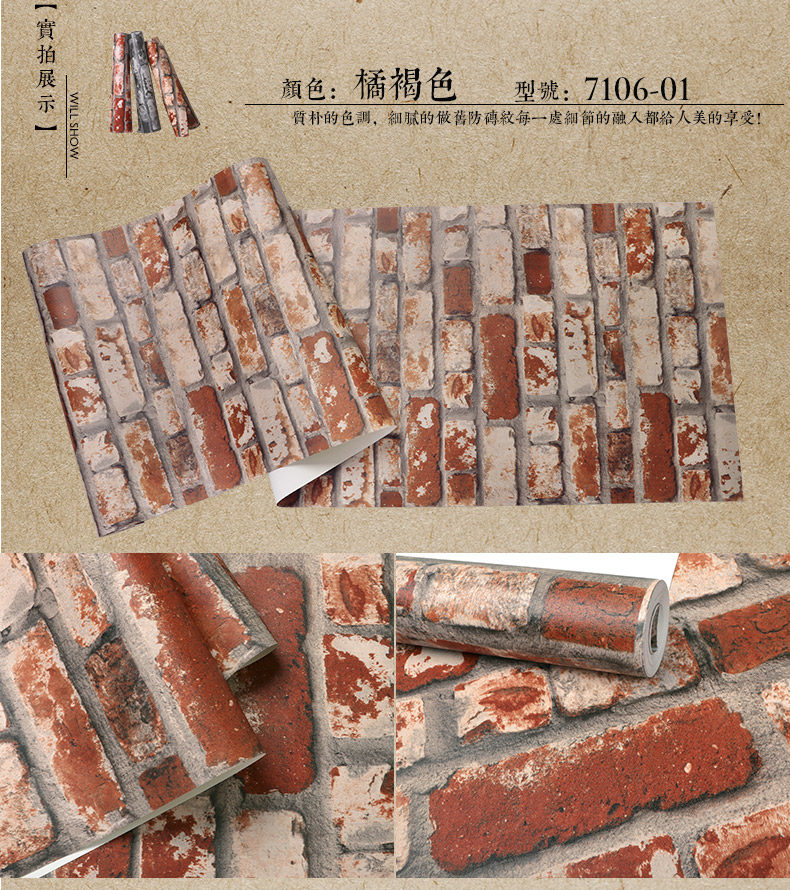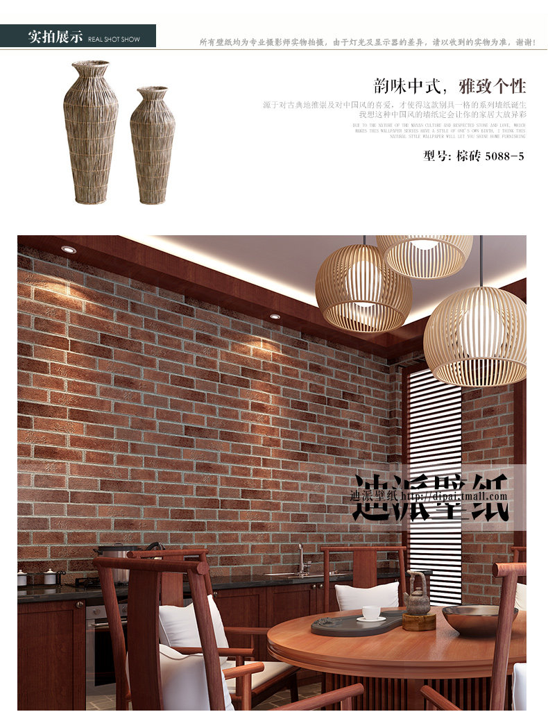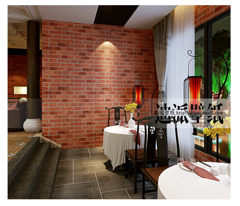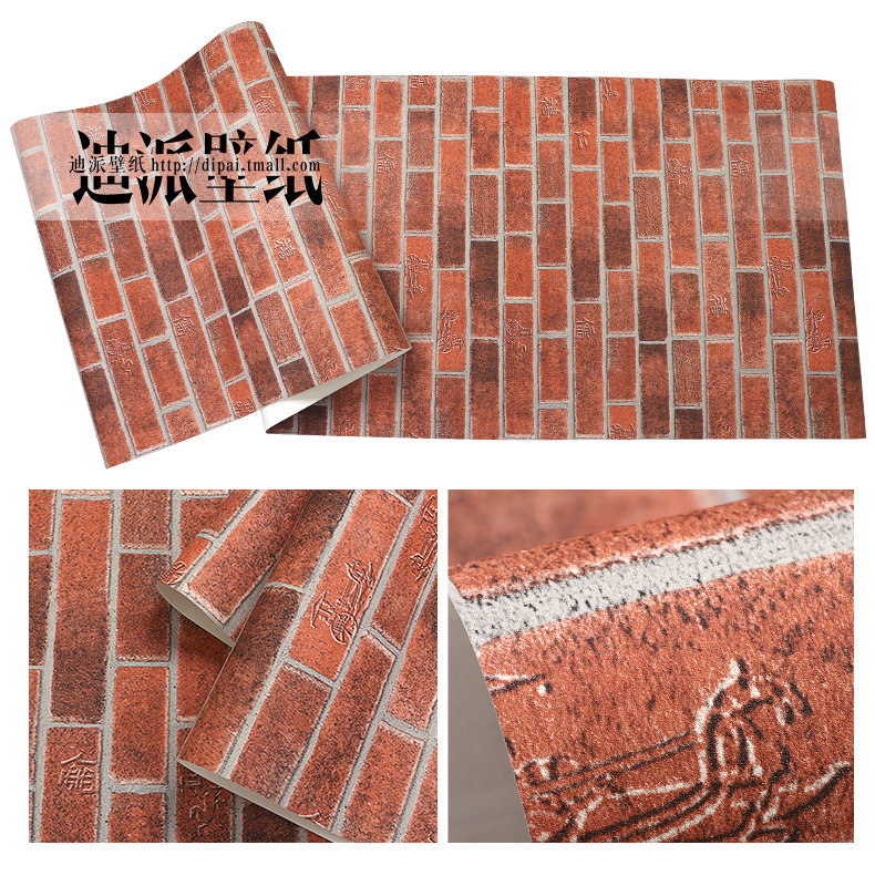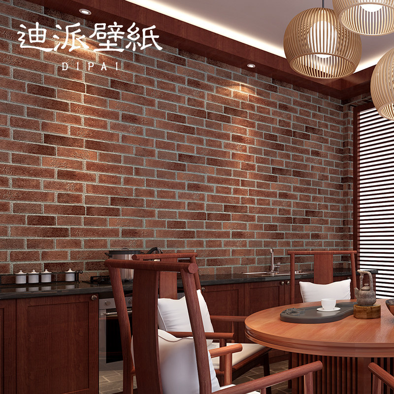 Китайский стиль ретро кирпичные кирпичные обои не -адгезивные антикварные кирпичные ресторан ресторан антикварный красный кирпичный обои