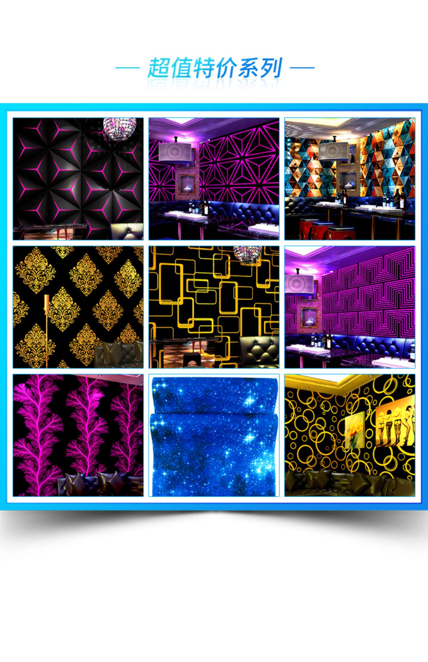 KTV обои 3d отражающие мигающие пейс -холл стены тканя тема тематическая коробка специальная отель фоновый фоновый коридор коридор барные обои