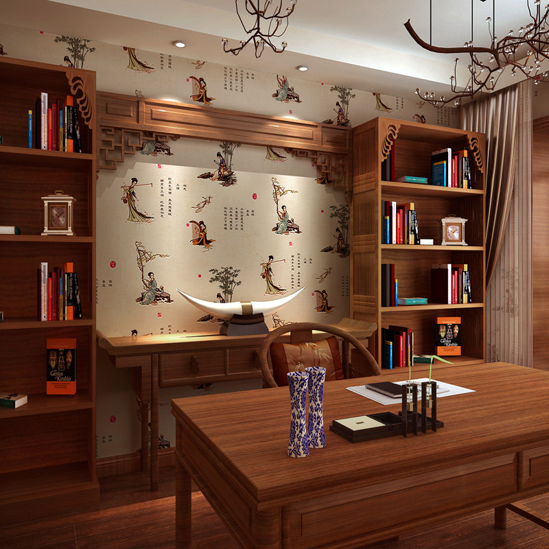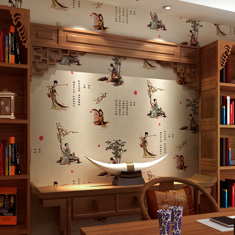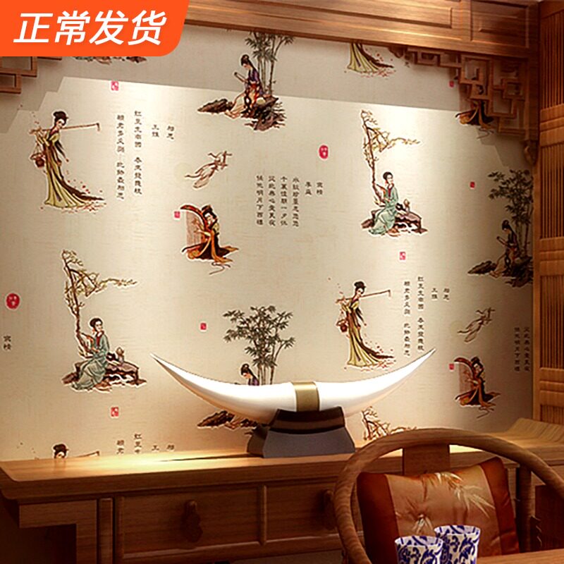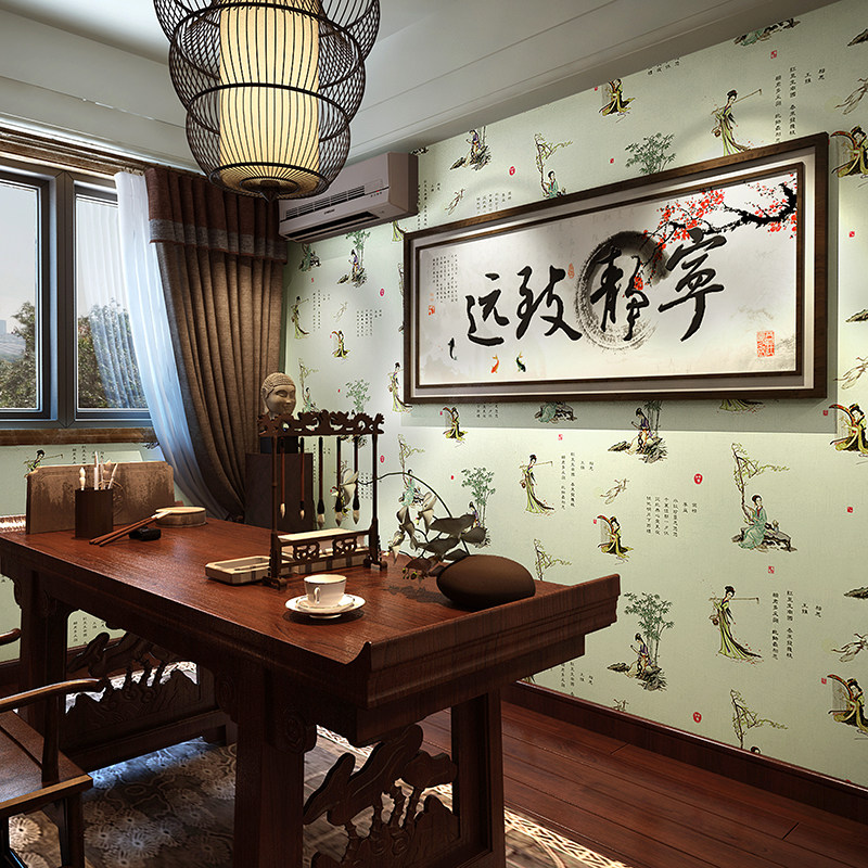 Китайская ретро -стиль обои отель чайная комната имитация не -ауто -адгезивное громкое клей, утолщенные фона дзен фоновые обои