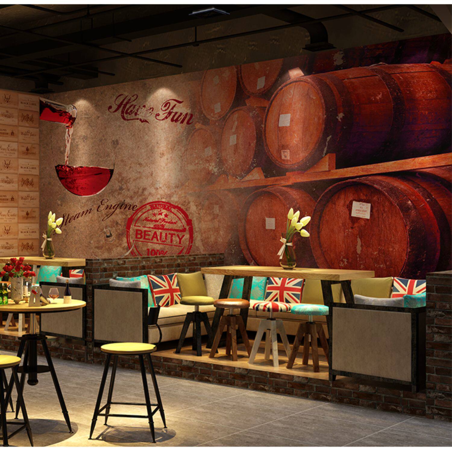 Обои винодельни Обои магазин -специфическая для маленькой ресторанная комната для отделки комнаты подходит для фоновых обоев для ресторанов
