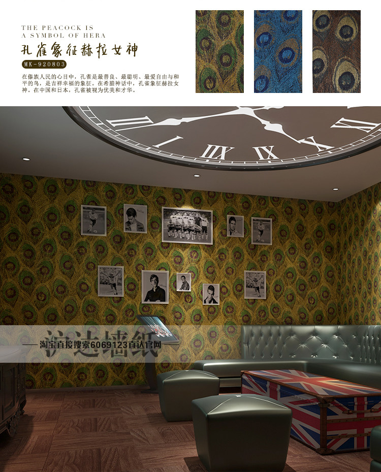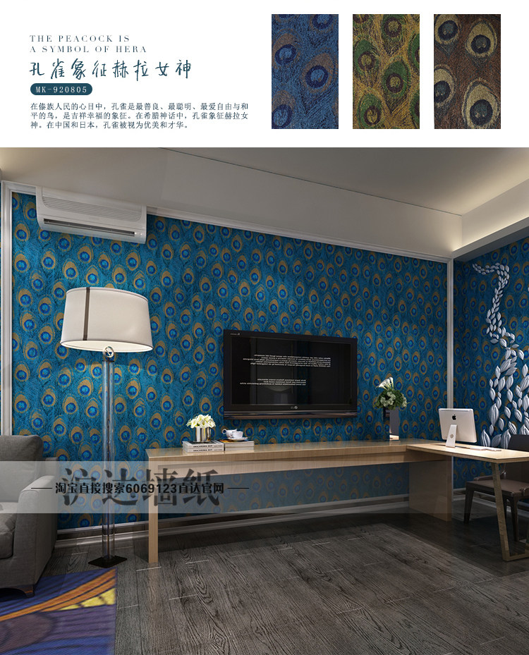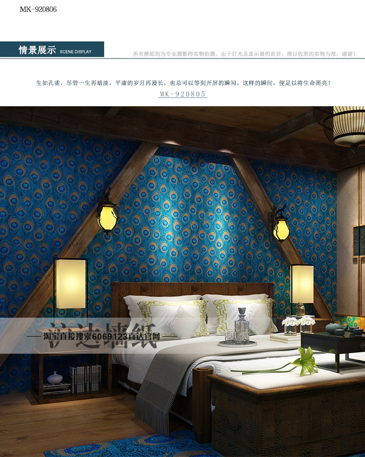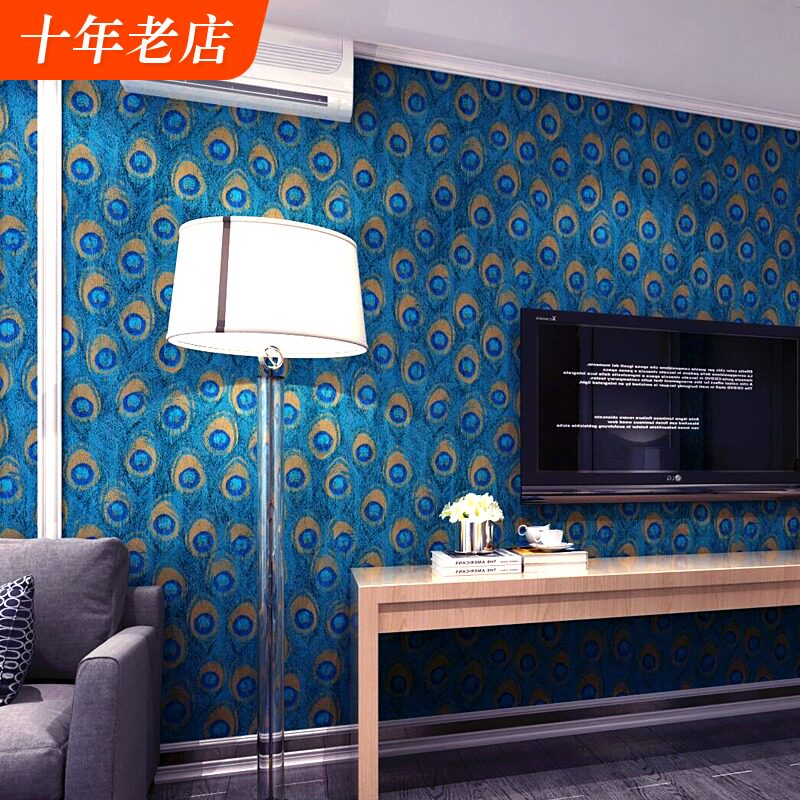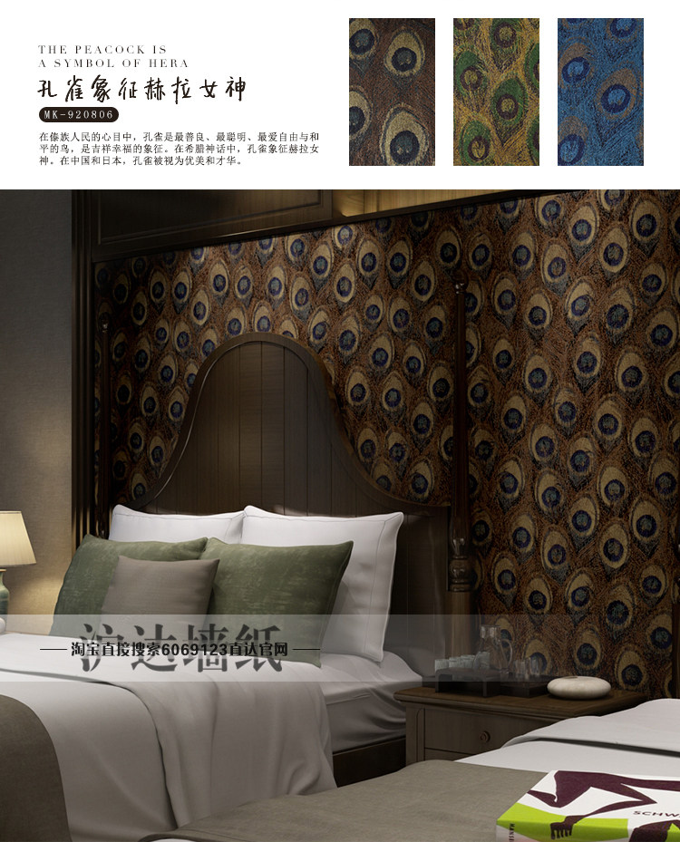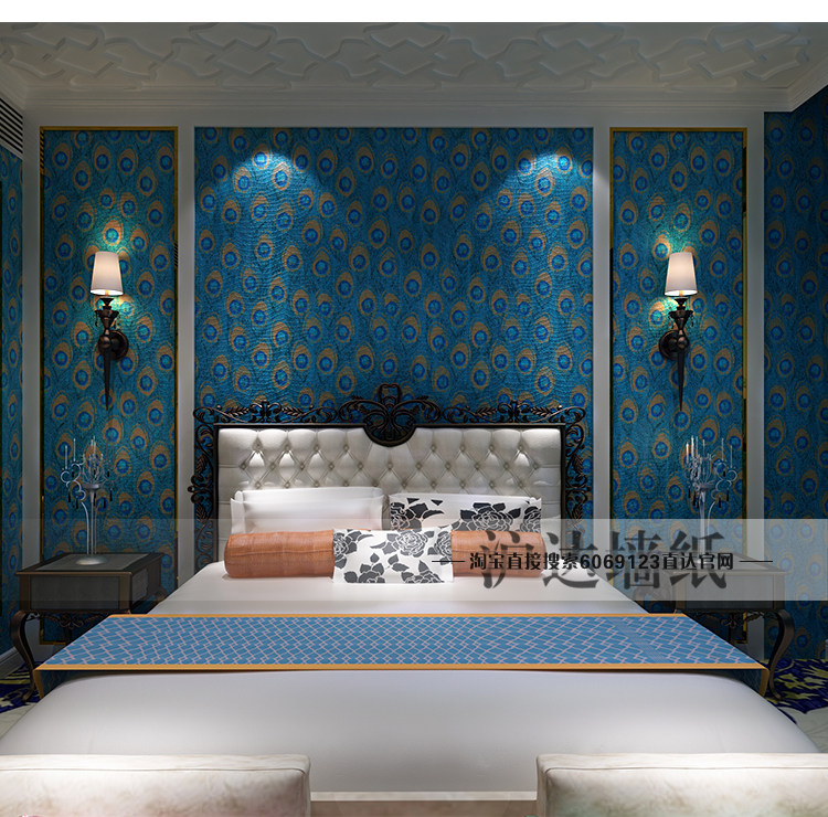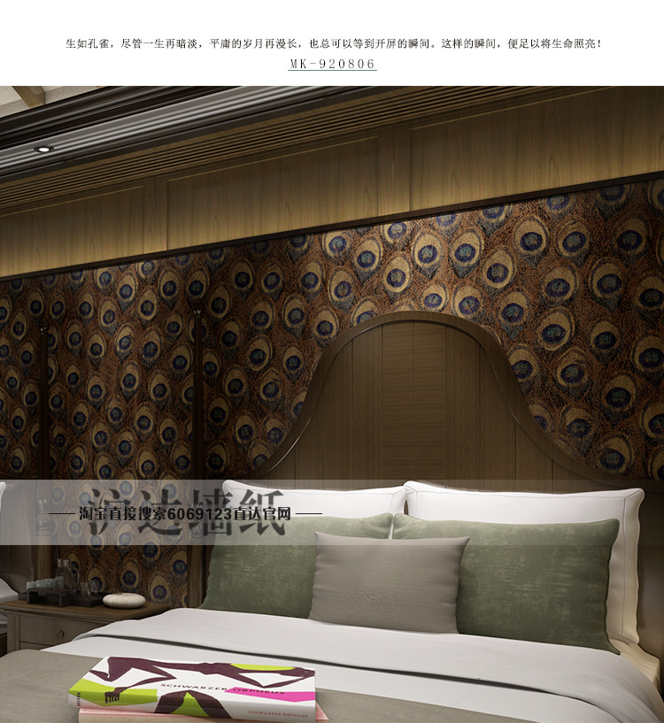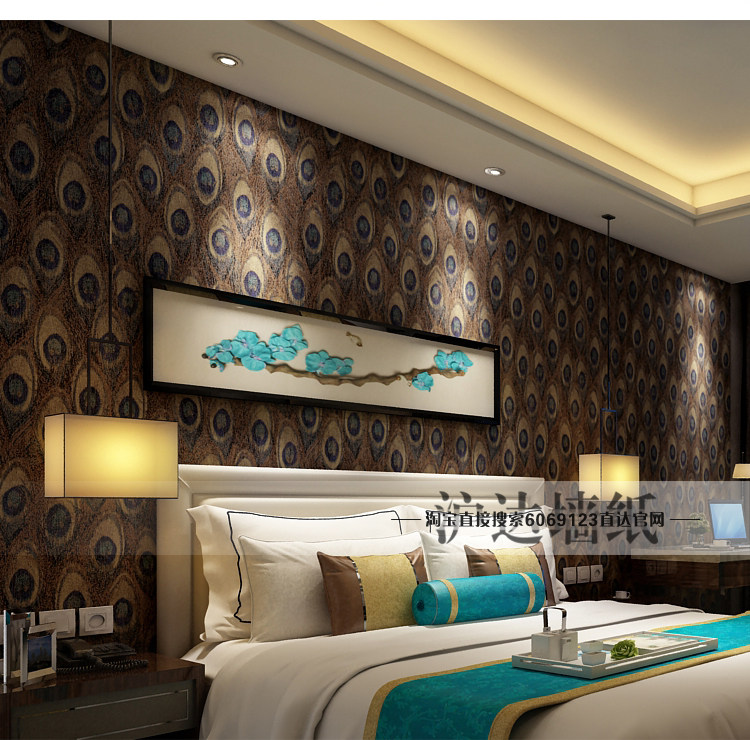 Юго -восточный азиатский стиль китайского стиля павлины перья обои спальня гостиная тема отель отель телевизор Фон Обои обои обои