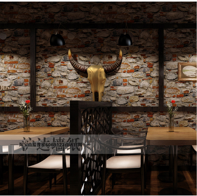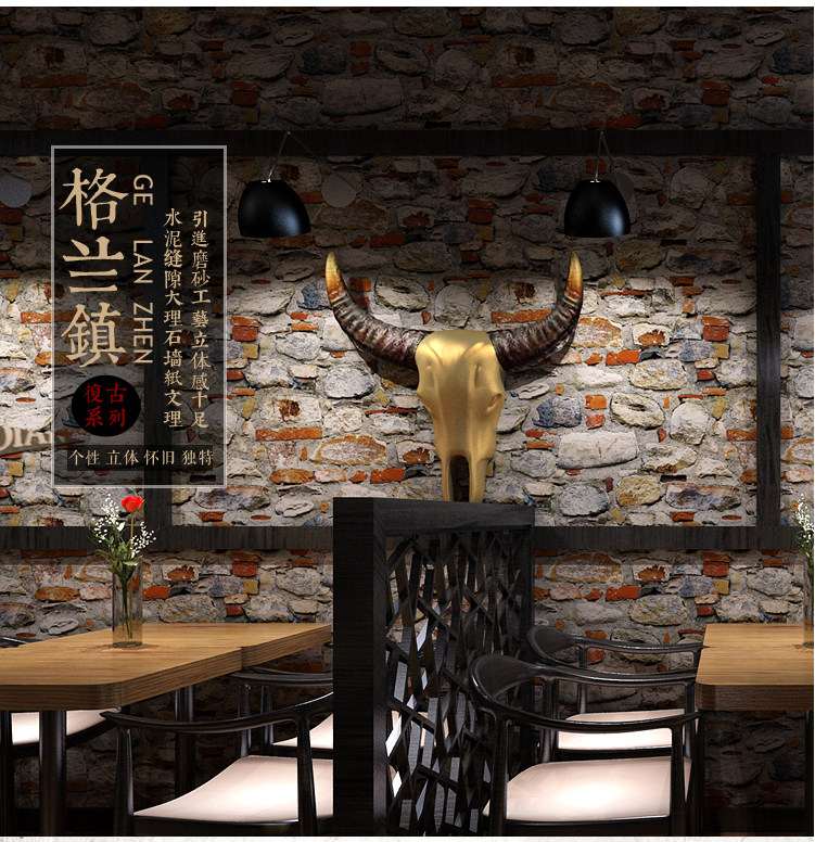 Ретро -3 -й трехмерный трехмерный антикварная культура камень каменный рисунок камень рок -обои ресторанные кафе персонализированные фоновые обои обои