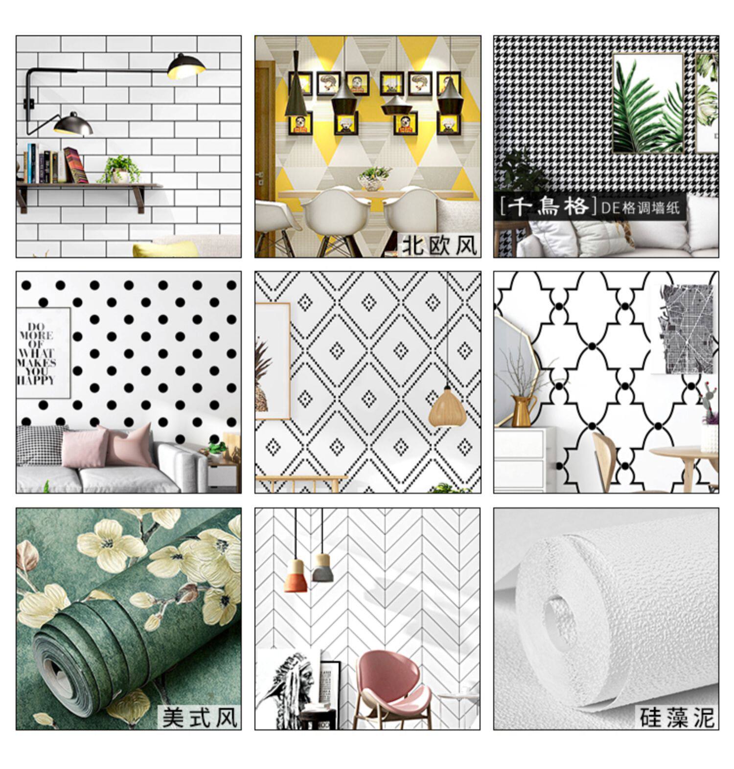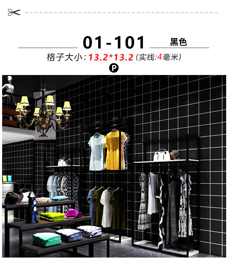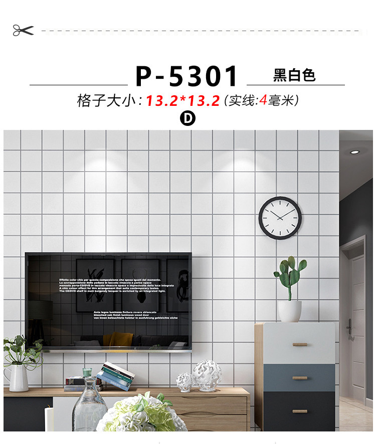 Черно -белая квадратная сетка обои не -адгезивные северные женские одежды молоко -чай магазин сетевая сеть красные фоновые обои