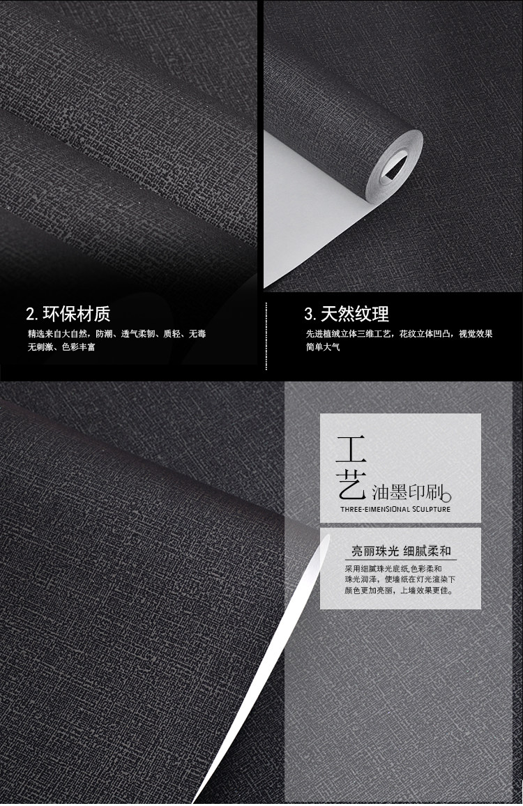 Pure Black Light Surfice Waterproper Wallpaper Гостиная Фоновая Магазин одежды Клубная мода, простые простые шелковые обои без переноски