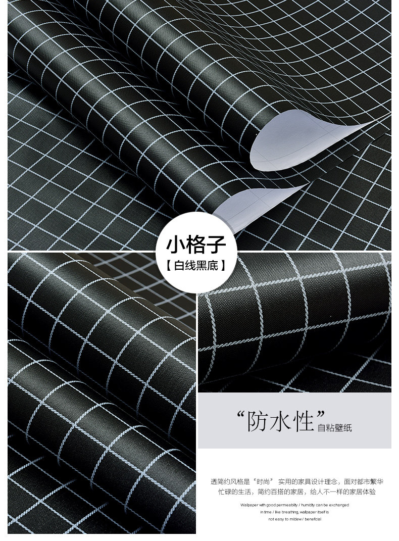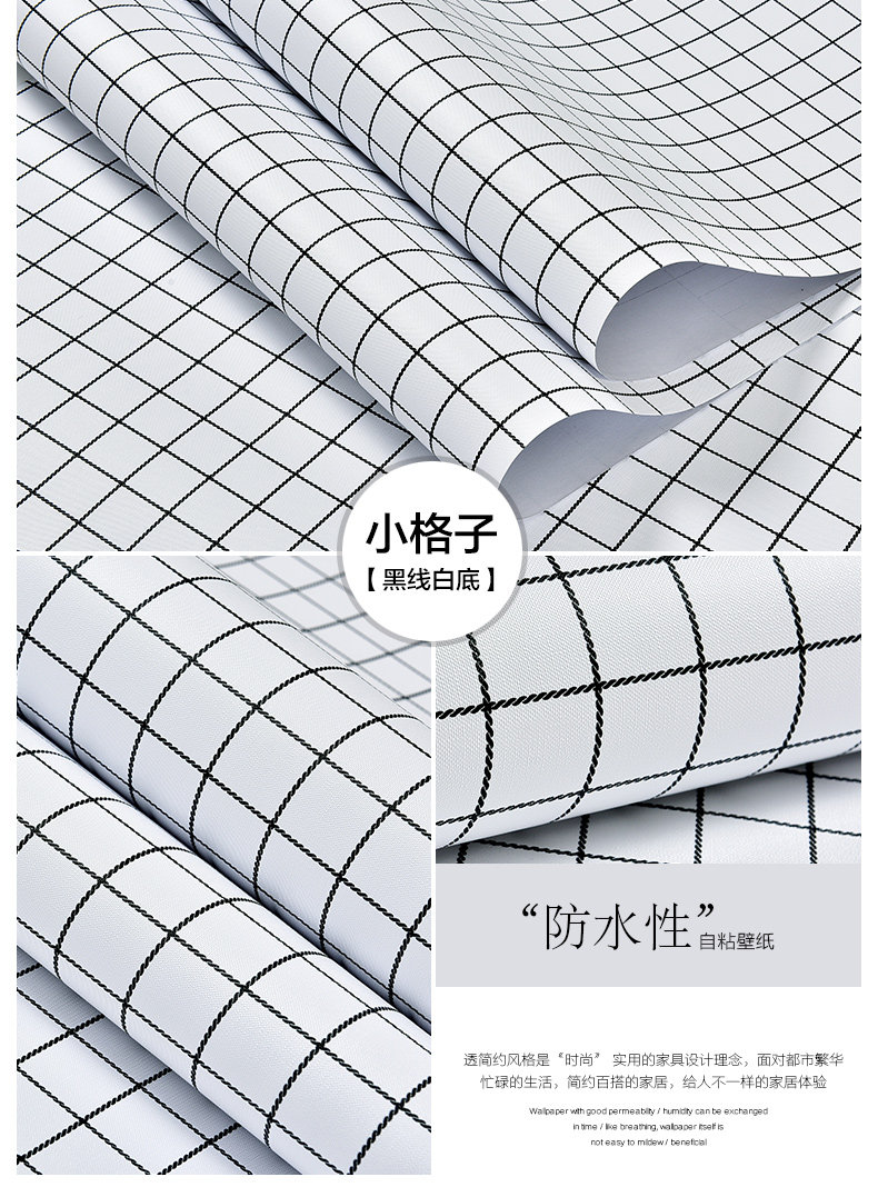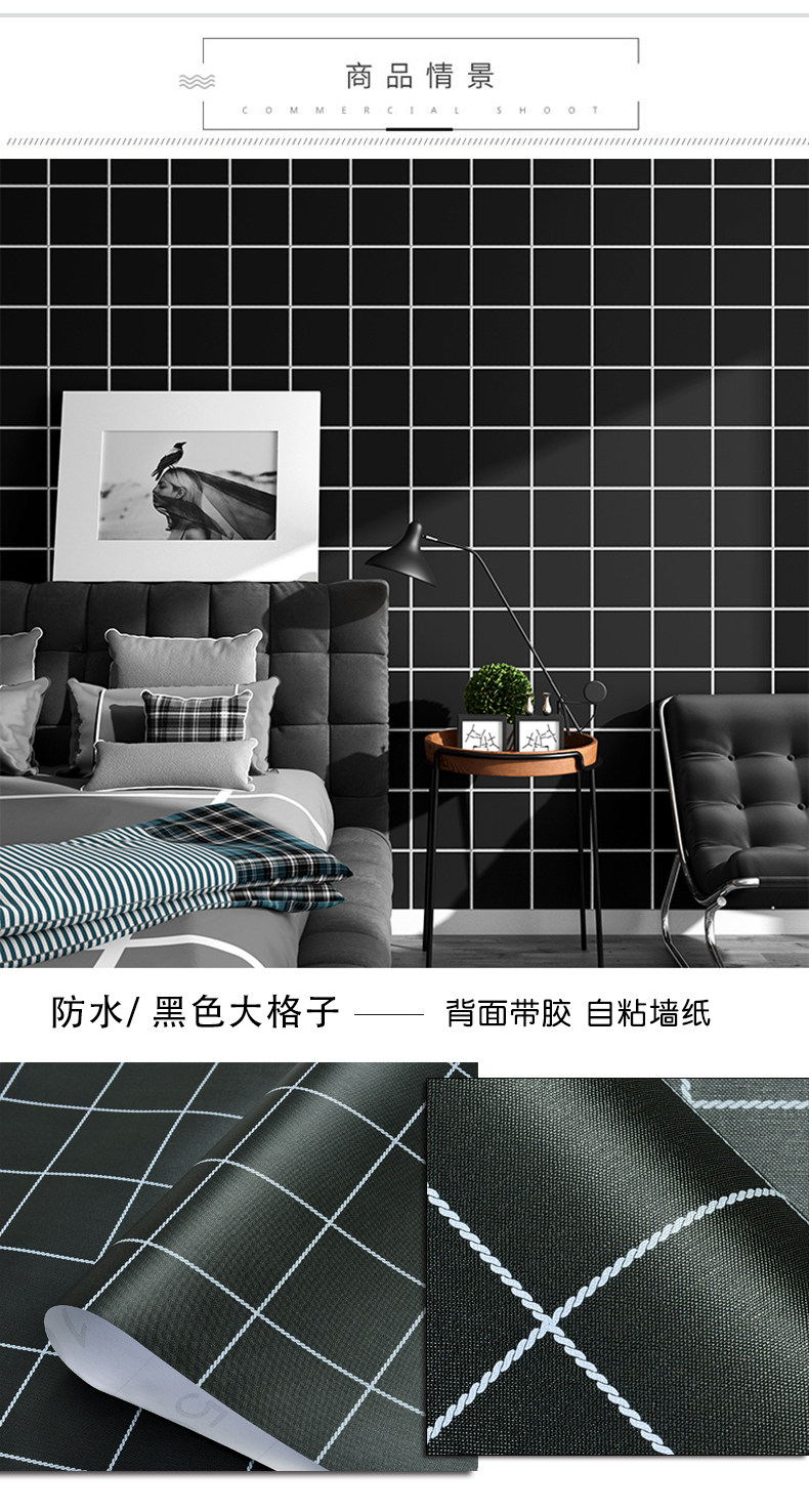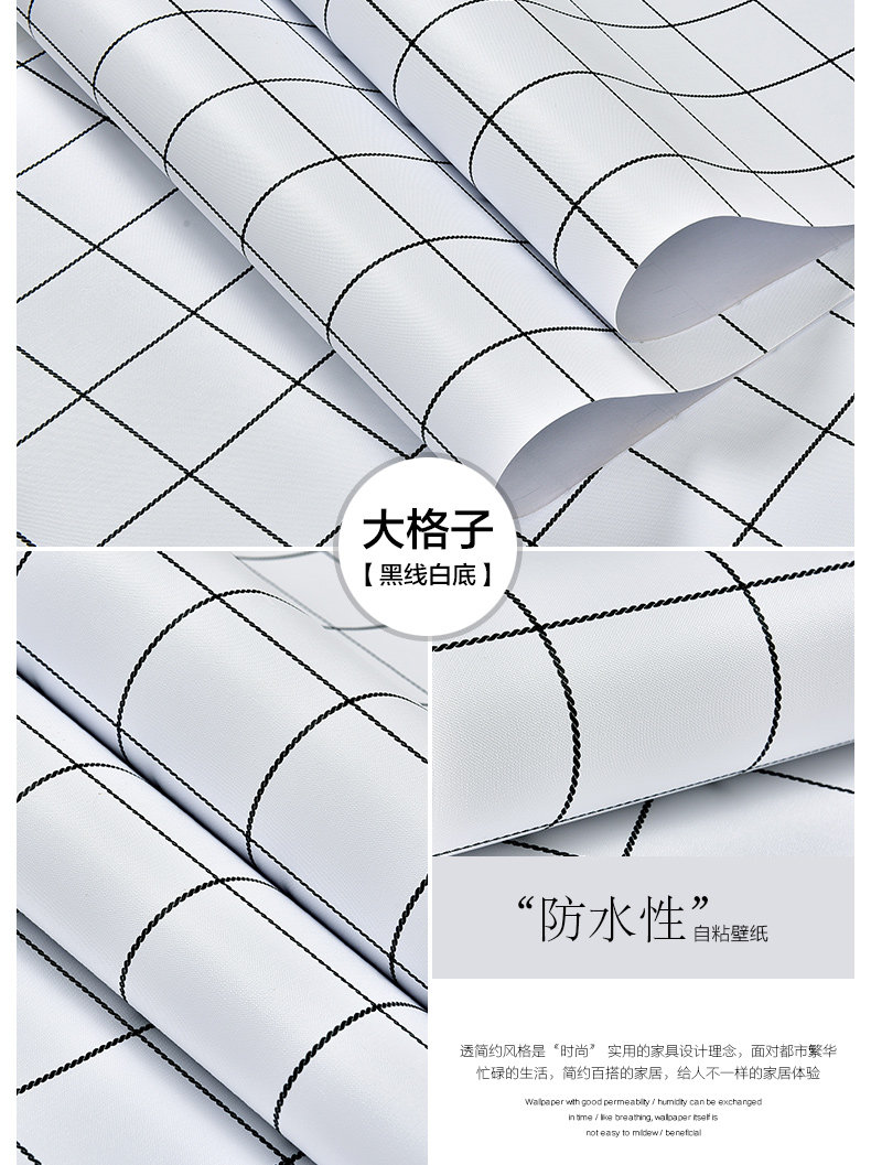 Скины с нордическим стилем скины с кожурами Черно -белая сетка Студент общежития обои для общежития обои Утолщенные и водонепроницаемая новая модель