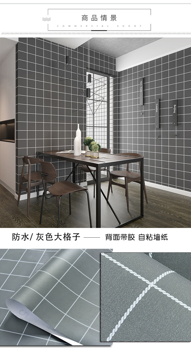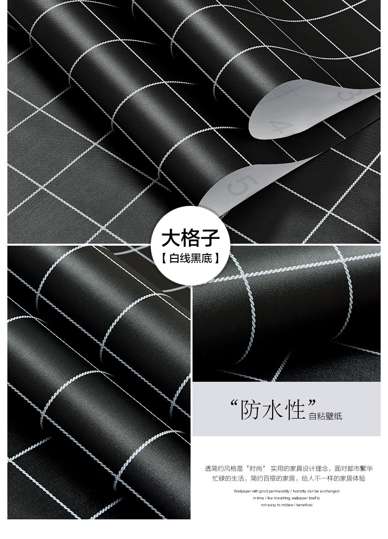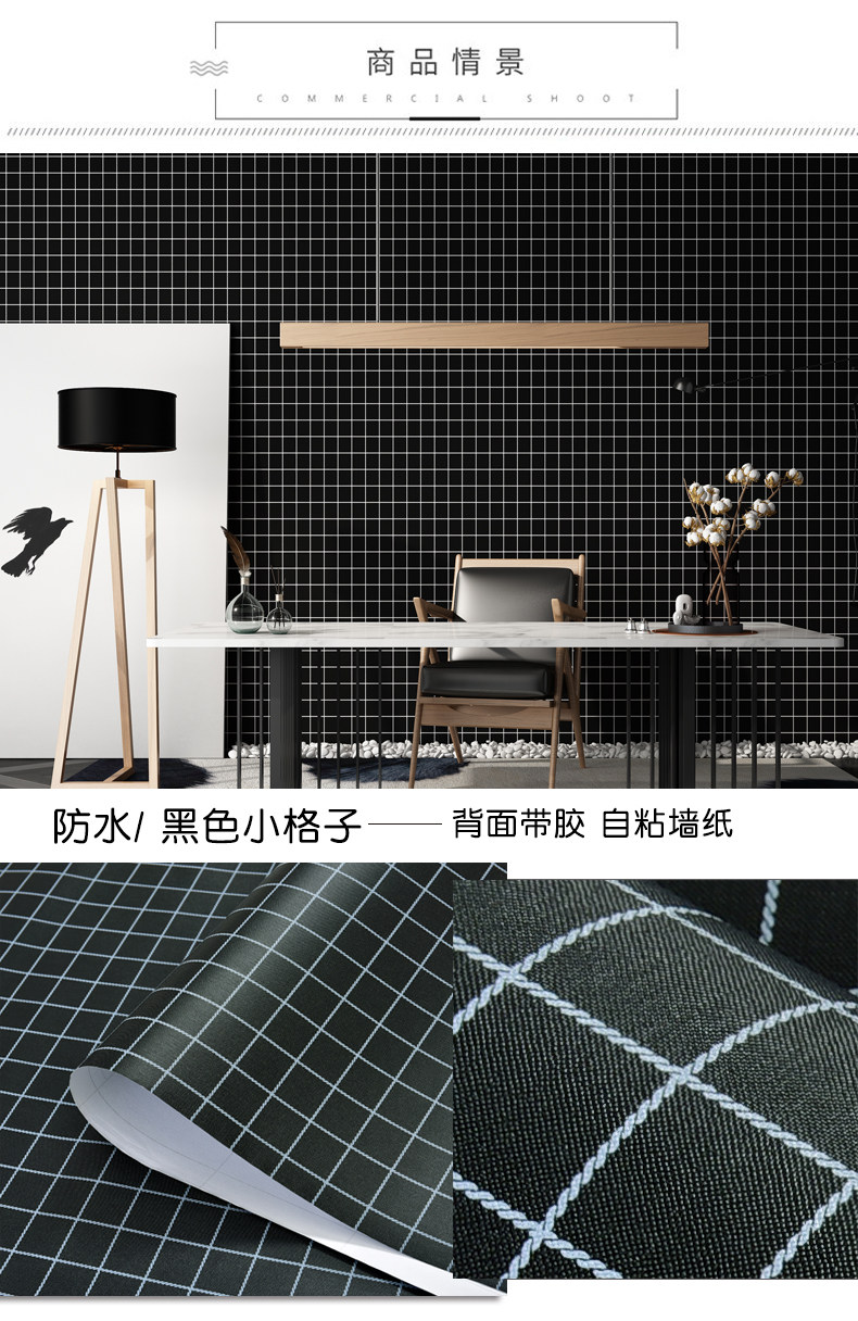 Скины с нордическим стилем скины с кожурами Черно -белая сетка Студент общежития обои для общежития обои Утолщенные и водонепроницаемая новая модель