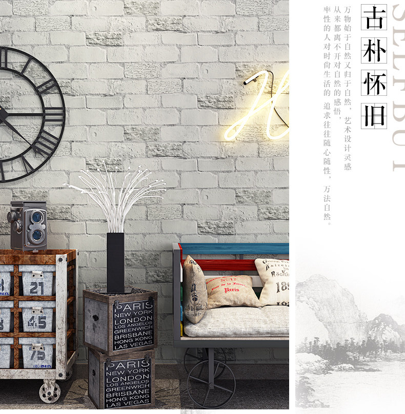Обои из белого кирпича культура кирпич гостиной магазин одежды обои с нордич ретро белый кирпичный рисунок 3D стерео кирпичи
