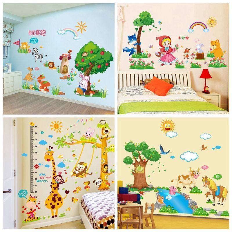 Детский сад, спальня, детская комната, наклейки на стены, украшения, мультяшные анимационные наклейки на стены, самоклеящиеся обои, наклейки с милыми животными