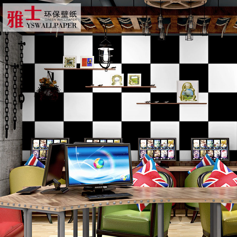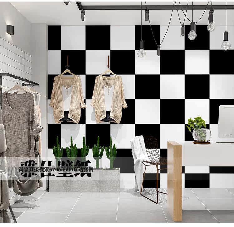 Черно -белая квадратная сетка квадратные обои современные минималистские гостиные волосы парикмахерская парикмахерская магазин одежды магазин телевизионный фон обои обои