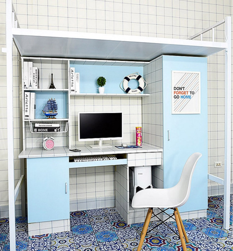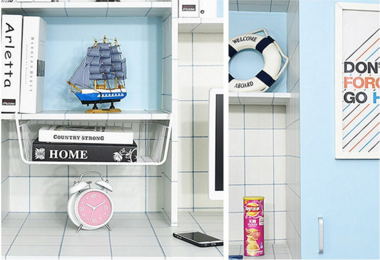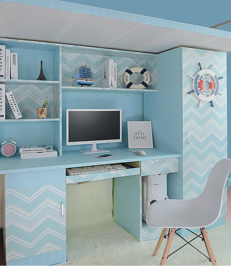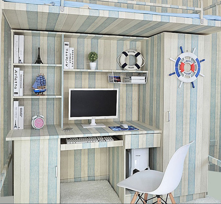 Обои Университетского общежития наклейка Стол Стол Гардероб Синие обои, приклеивайте десять метров мужской спальни, свежие