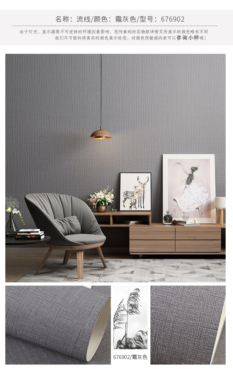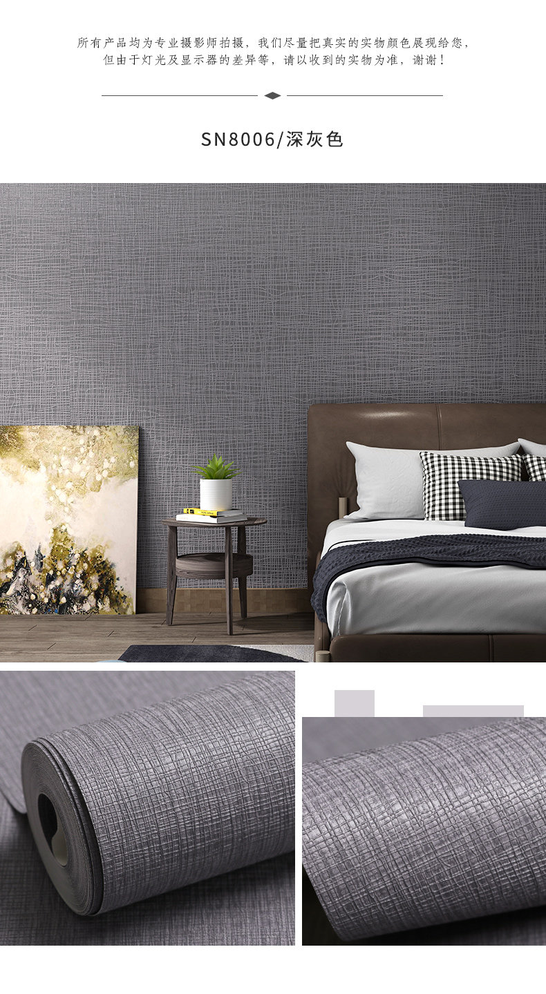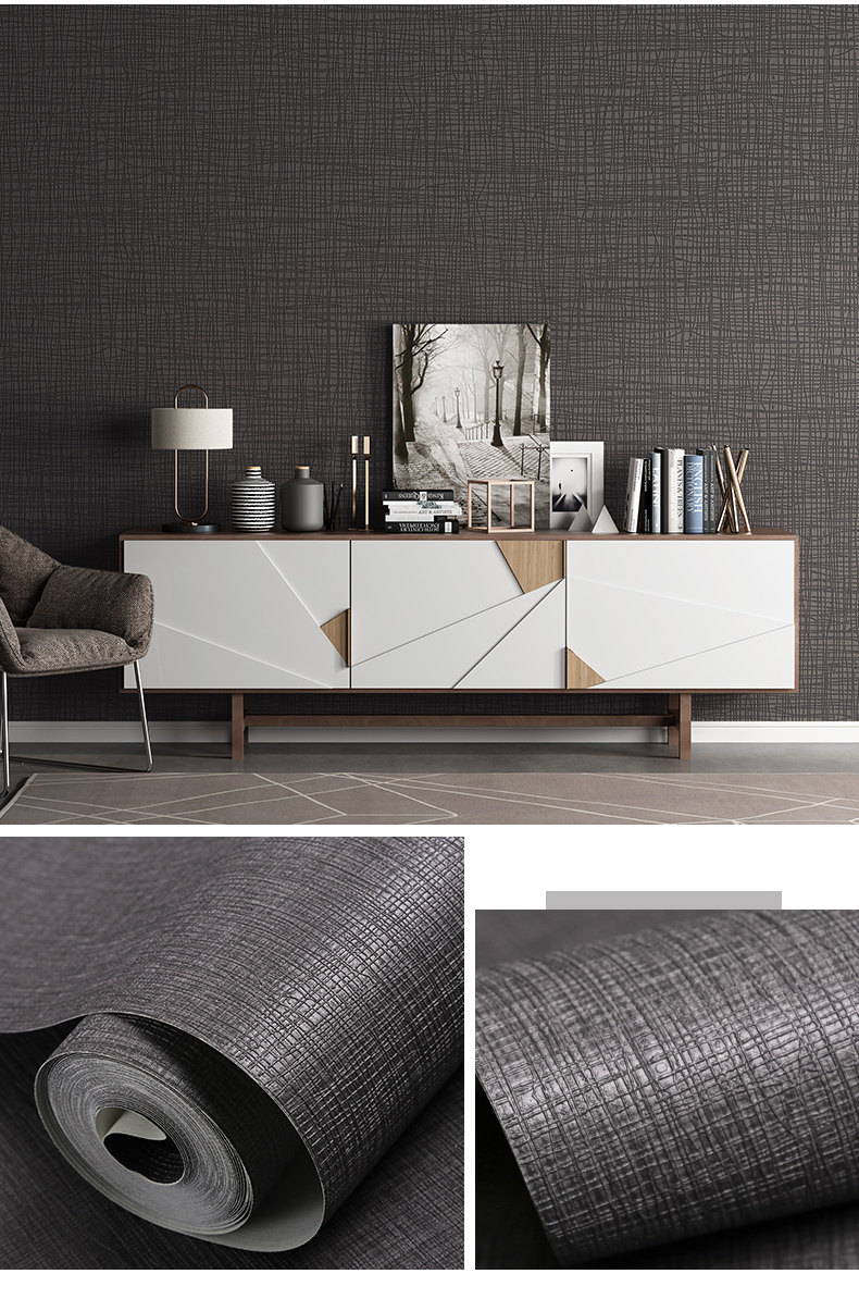 Поли -Королевые обои для гостиной спальня фоновая стена Серые обои темно -серое японское льняное льня
