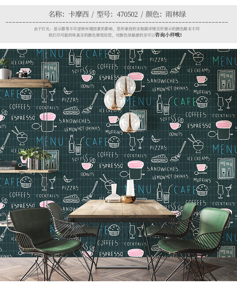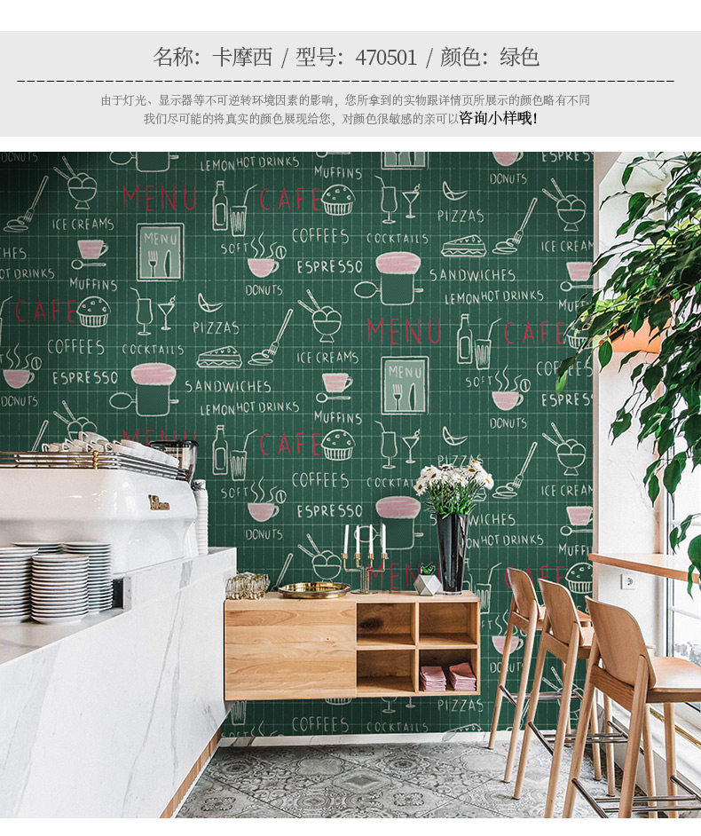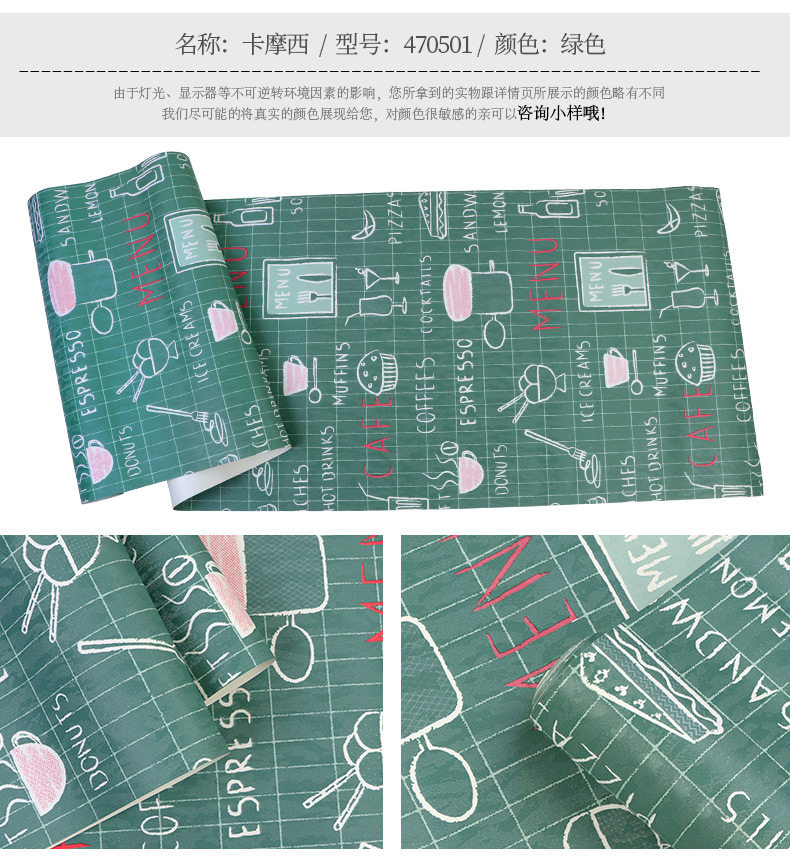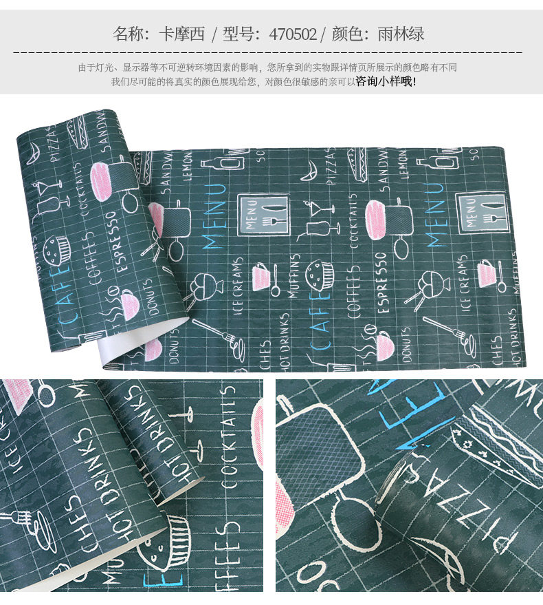 Кофейные черные зеленые самоклеющиеся обои, английские буквы