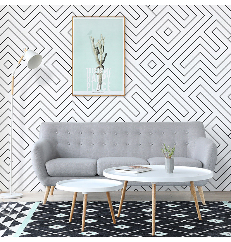 Северная геометрическая графическая линия черно -белая сетка обои гостиная спальня современная минималистская фоновая обои обои для молока чай