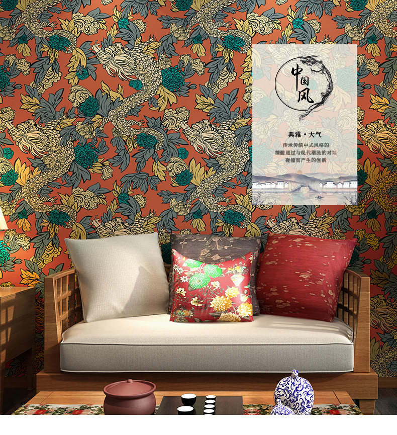 Китайская стиль обои классическое китайское дракон Китай Ветром Дракон Файн Гостиная Фон Отель