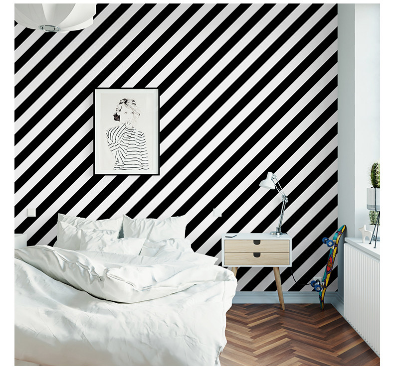 Северный стиль черно -белые полосатые обои твил современные простые спальни гостиная магазин одежды фона обои обои дома использование