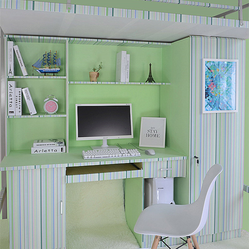 Зеленые самоклеющиеся брендовые свежие водонепроницаемые корейские обои, подходит для студента, скандинавский стиль