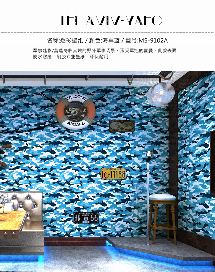 Камуфляжные обои военные военные тематические ресторан темно -синий голубой отель