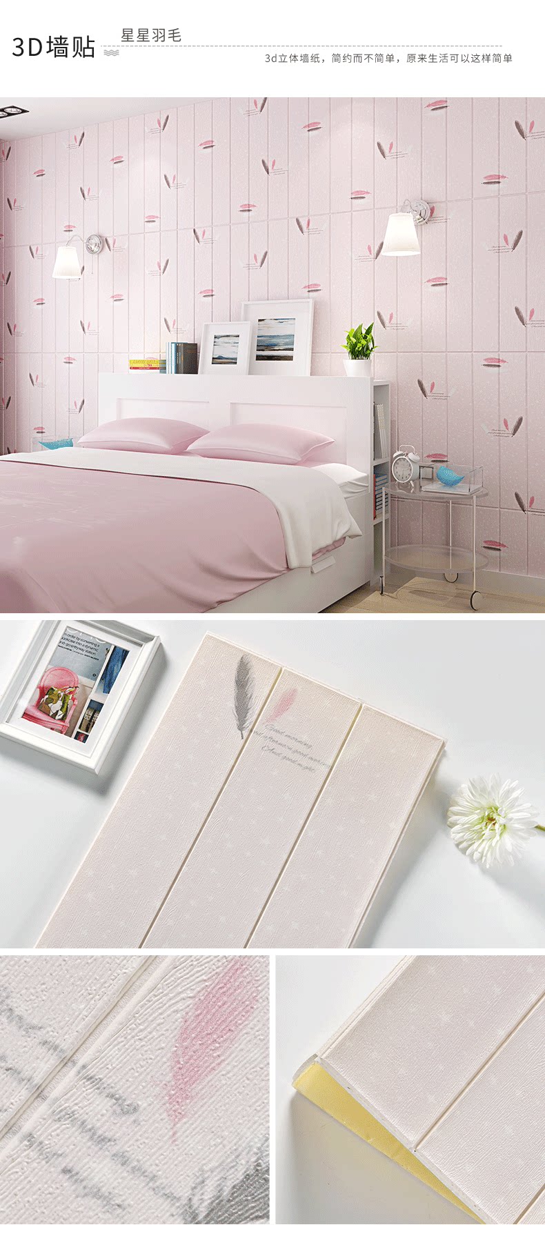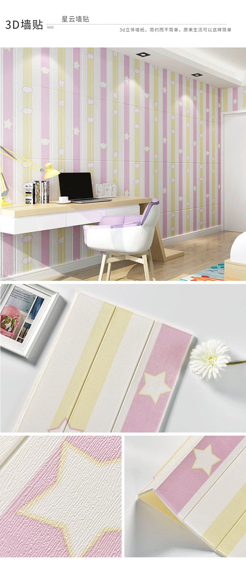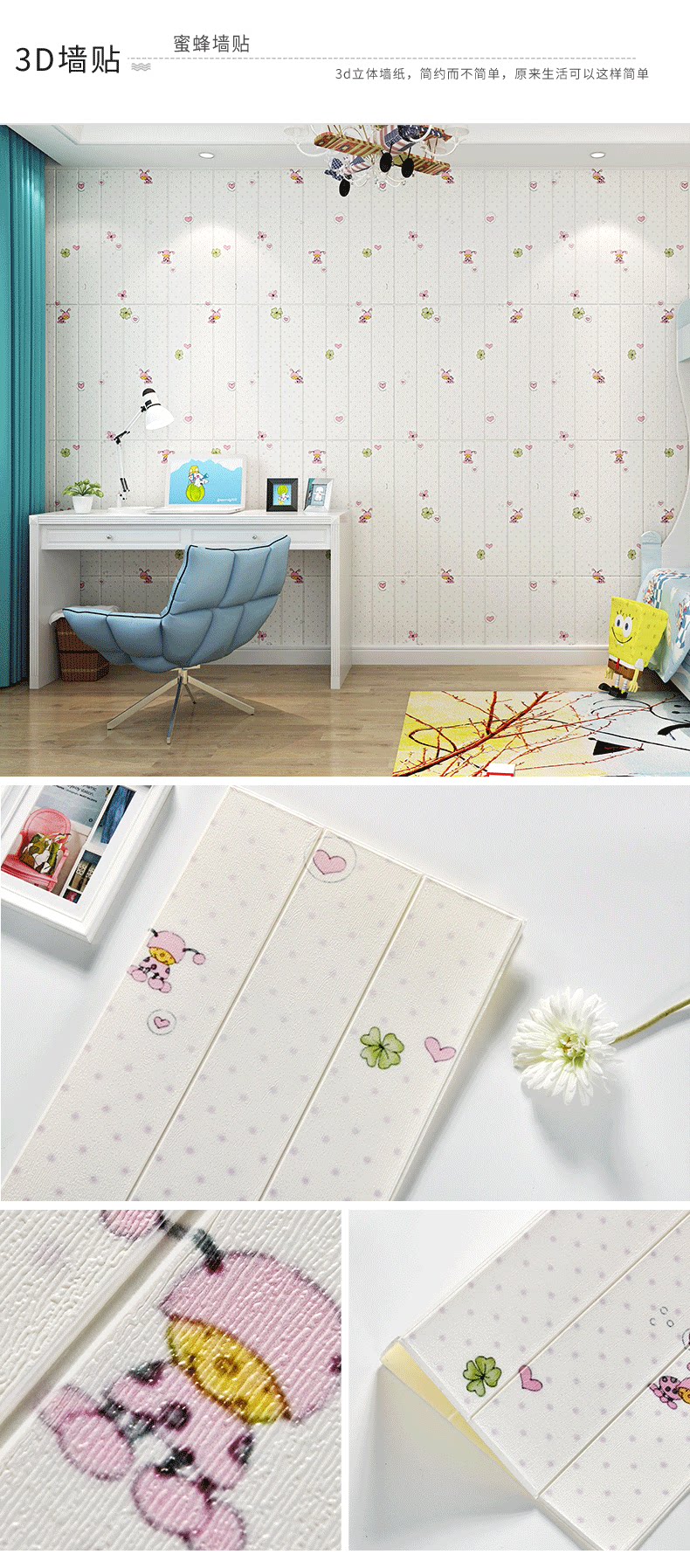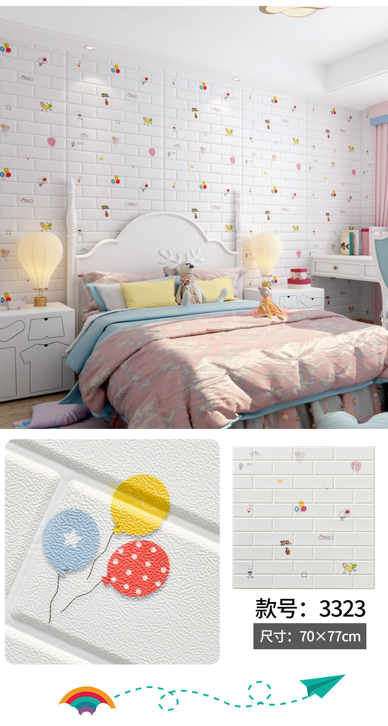 Самоклеющиеся трехмерные мультяшные розовые обои на стену, 3D