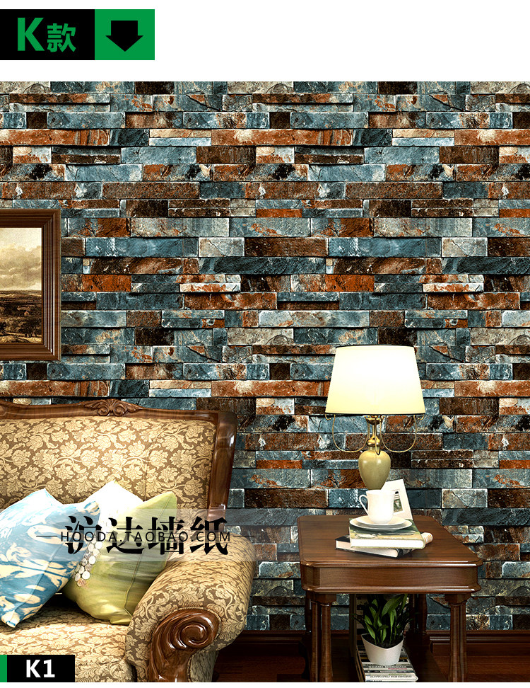 Имитация кирпичного рисунка обои ретро кирпичное кирпичное симуляция камень ПВХ неавтондирная чистка без гелевых обоев